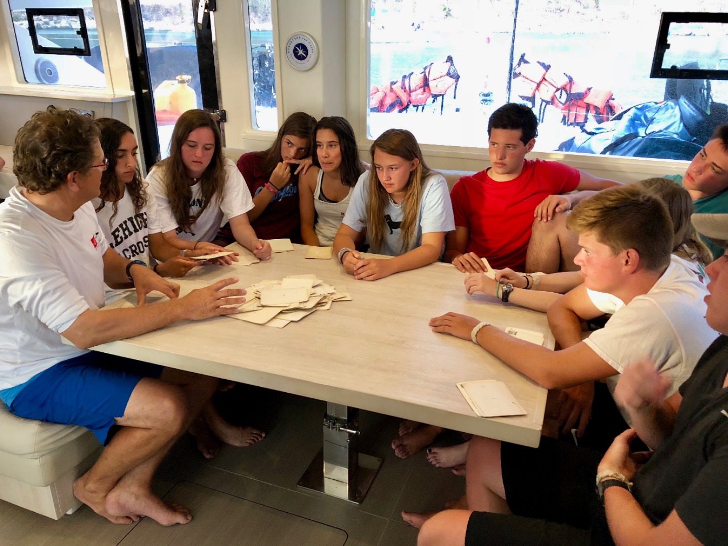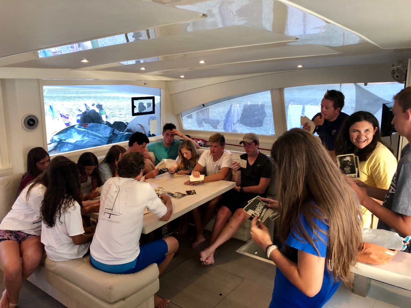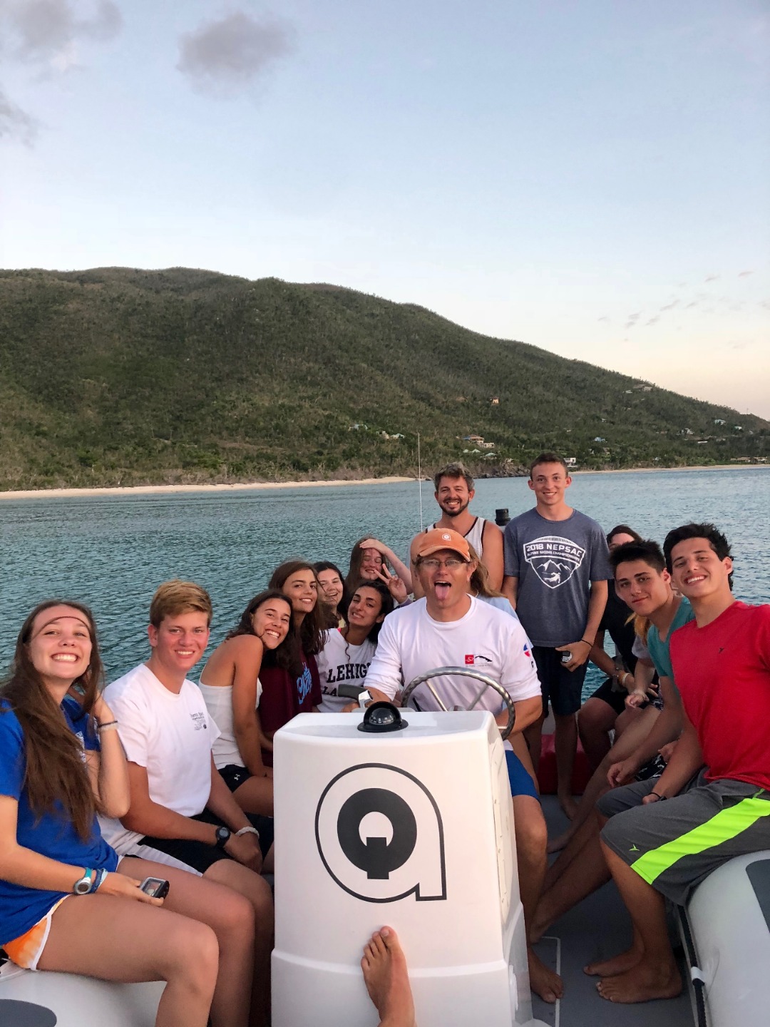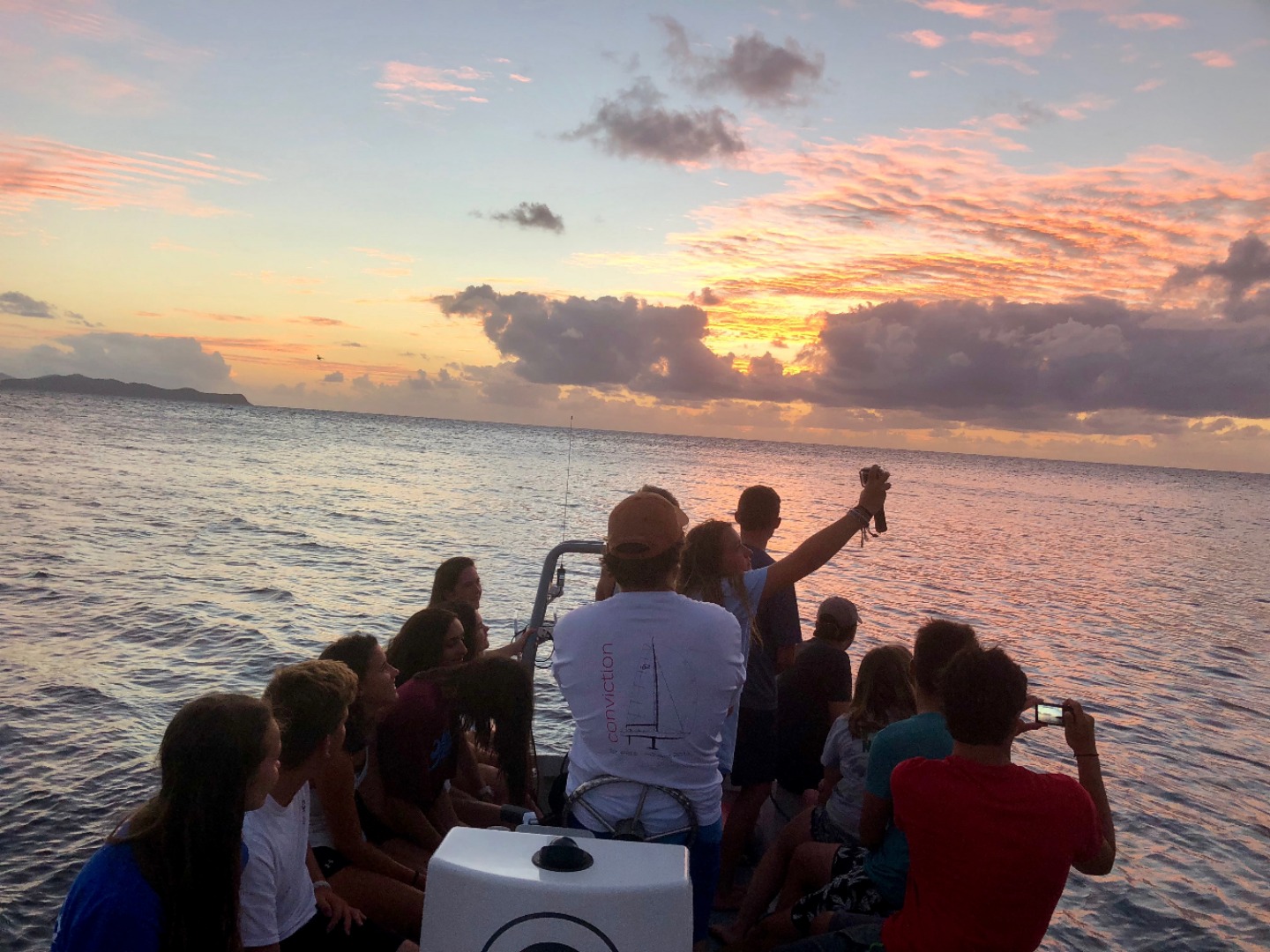 Today has been the best day of my entire summer! We woke up and had our first fun dive, without any skills to pass, and were allowed to bring our dive cameras. We dove the coral gardens and saw barracudas and jellyfish! After we got out of the water, we moved to a different dive spot called the chimneys. At the dive site, there was a cave swim through filled with coral and fish. It was one of the coolest swim throughs I’ve done yet! After the second dive, we ate lunch and had tome to relax and hang out. Later in the afternoon, we had rescue skills dive where we practiced bringing unconscious divers to the surface safely. After that dive, Matt, the skipper of our boat, took us wakeboarding which completely made my day and left us all with smiles and continuous laughter. When we got back to the boat, we showered and then ate chili and rice. Mike, the director of Action Quest, came and joined us for dinner. We did the squeeze and talked about our favorite parts of the day. After that, we did an activity with Mike, where we expressed what we value about ourselves. Mike took us out on his super dingy to chase the sunset. Tonight’s sunset tops a lot that I have seen before. We are about to watch a video on search and recovery. Overall, the best day yet!