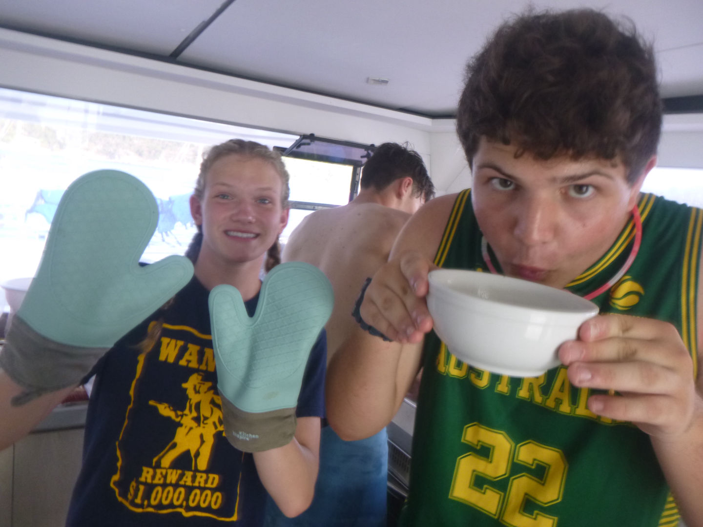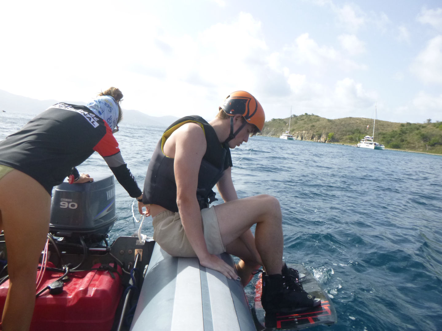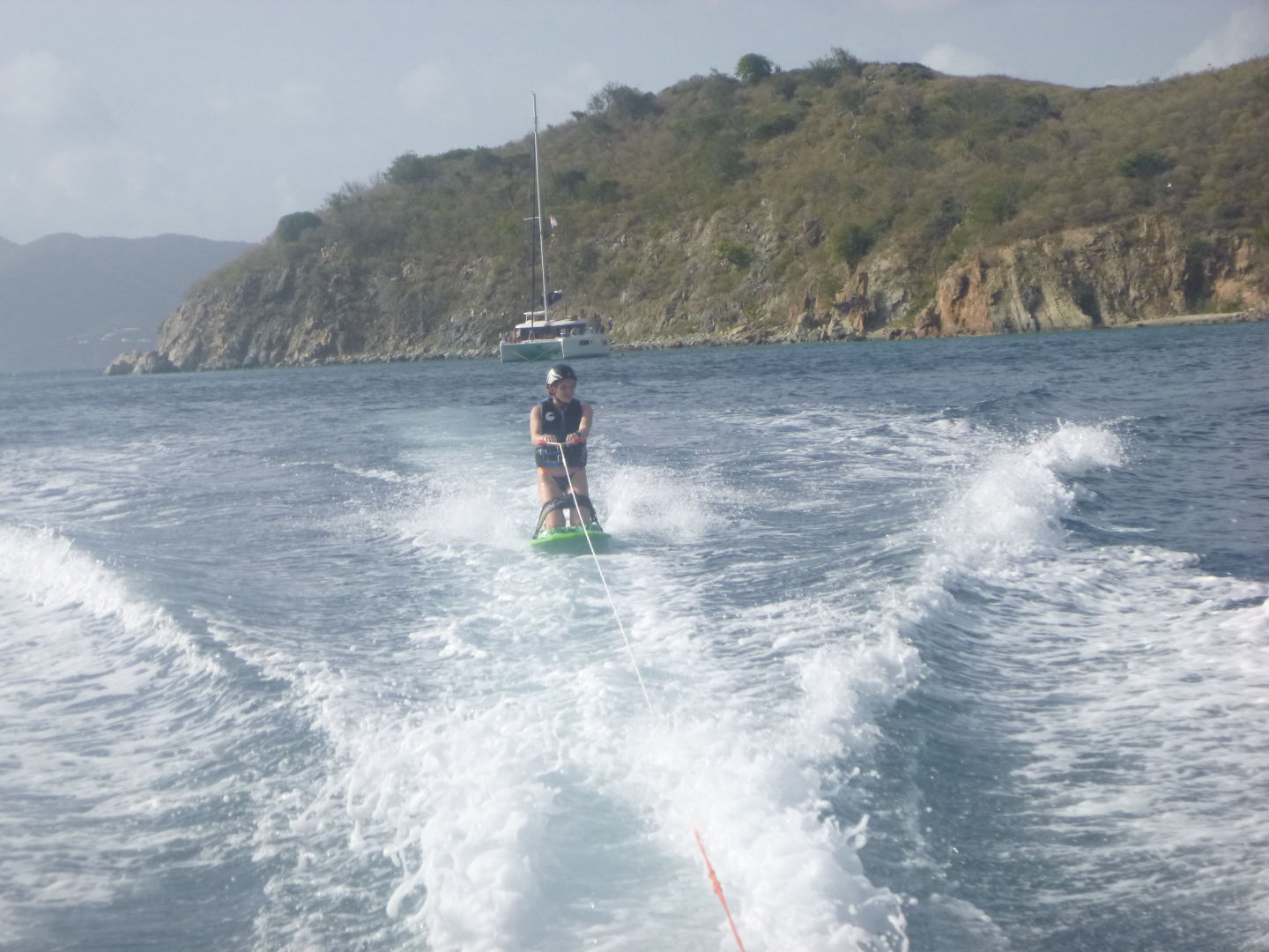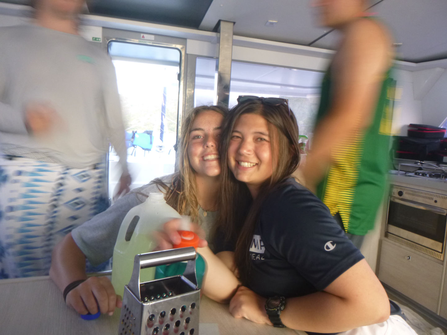 Hello! Today when we woke up in Leverick Bay, everyone was GASSED. Luckily, we had a 3.5-hour long sail to Great Harbor Bay, and Caleb, Kyler, Scarlett, Dylan, Tyler (Aussie), Tyler (Florida), Brian, Alli, Alexis, and Zach all took a SUPA NAP (see flick below). Everyone was just piled on top of each other, but somehow Dylan got a whole bench to himself. When we woke up, the Neptunes did their deep water dive and went almost 90 feet down. They saw an arrow crab, thought it was a spider, freaked out, then realized it was an arrow crab, then calmed down. The Dolphins did their first underwater photography dive and used AQ’s really awesome camera equipment. They got really amazing pictures of coral, fish, and each other. When everyone got back, we went knee boarding (wakeboarding on your knees)!! Both Tylers and Jack had SUPA WIPEOUTS, but Moorea, Caleb, and Zack SUPA SLAYED. After the knee boarding, we had a Mexican night with super yummy tacos/burritos. Then we listened to music and had lots of fun during dishy time, then we all hung out and went to bed.