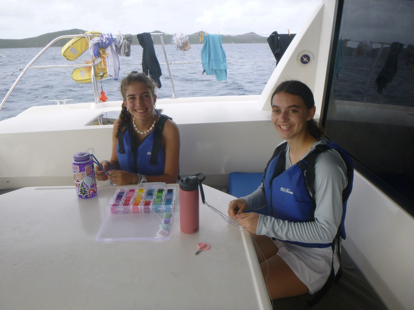 Meanwhile, Garret identified six whole fish-but no half fish and certainly no quarter fish, which we both agreed was insane. Later, after lunch, we sailed over to Savannah Bay-a couple of us, including Maya, Paul, and I, fell asleep during some of the sails, and Tessa and Rachel made some friendship bracelets. Halfway through the sail to Savannah, Rachel, Anya, Paul, and I sat up by the power tower and asked Joe and Anna a bunch of marine research/sailing questions. We had a bit of textbook reading to do, so Derek joined the rest of us up on the power tower to ‘read’-but we really just joked around most of the time. We did ocean showers, and a group jumped off the side of the boat while Logan and Noah made hotdog alfredo for dinner. For squeeze, I brought back Paul’s iconic quote: “Oh, Darwin. I heard about that guy once. SKIP!” in reference to a section in our reading on marine organism evolution. Then, we went around and shared the weirdest category to jump into the water with-The French Revolution and a cellphone tower were some of the funniest. Finally, we ended the squeeze with a clap, snap, and yelling, “LONG LIVE THE QUEEN” (loud enough for the other boats to hear, of course).