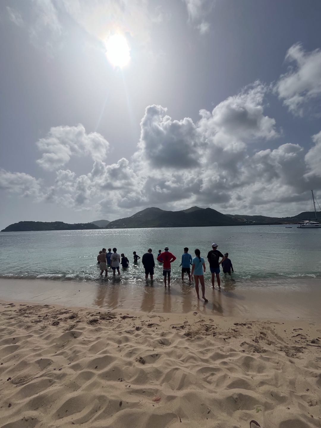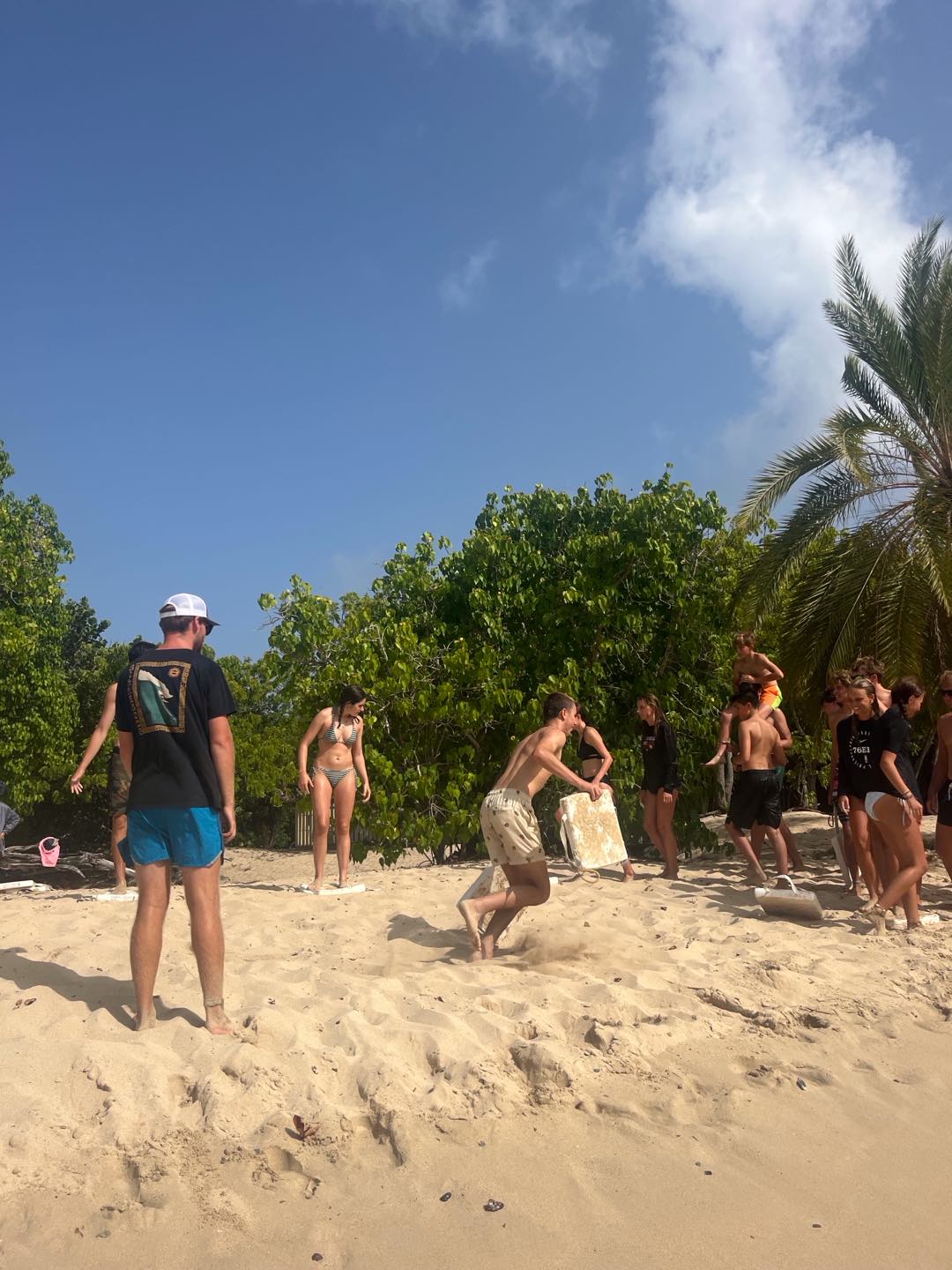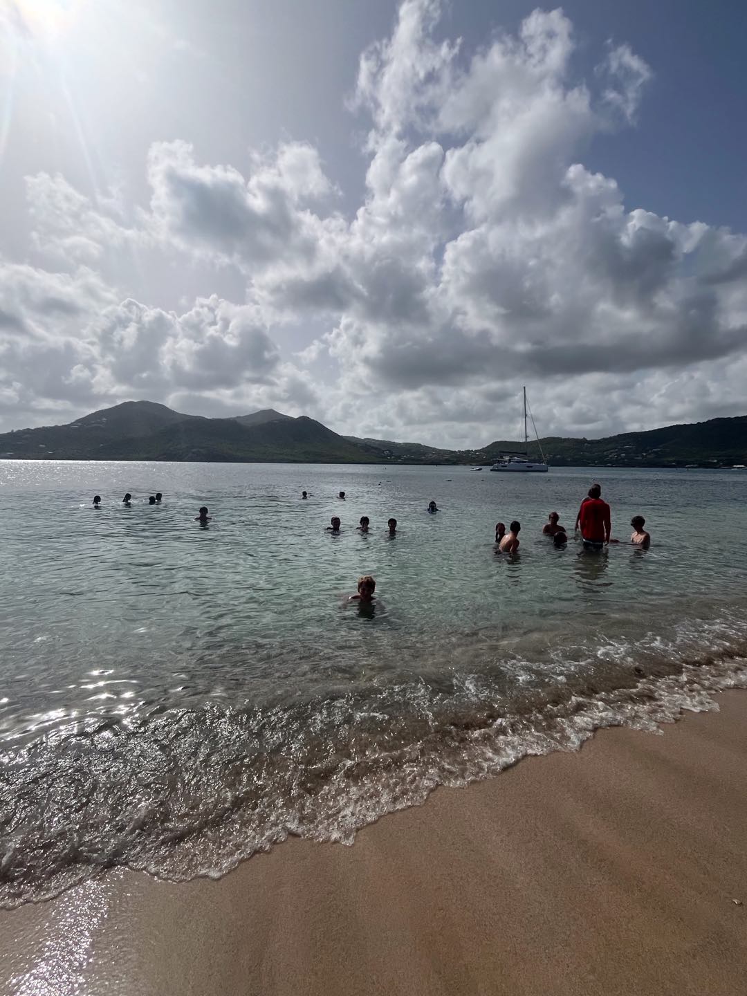 We then went souvenir shopping, most people got some sort of t-shirt or hat, Ellery and I got some really cute matching t-shirts. We all made it back to the boat at around three-ish and got ready for the beach Olympics. We walked from the boat to the beach for around 15 minutes, but everyone enjoyed the walk because we saw how pretty Antigua is. At the beach Olympics, we played two games: tug of war and a game called Chicklet Jump against the other boat, Hagan Time. Unfortunately, we lost both… womp womp 😢 and the prize was ice cream that the other boat won. Jackson was the one who was most disappointed about the loss. Once the exciting events we all decided to stay and hangout for awhile at the beach after the events were all wrapped up. Most of the boat forgot about losing because we all could agree that we were all excited for the AC and fresh water showers.