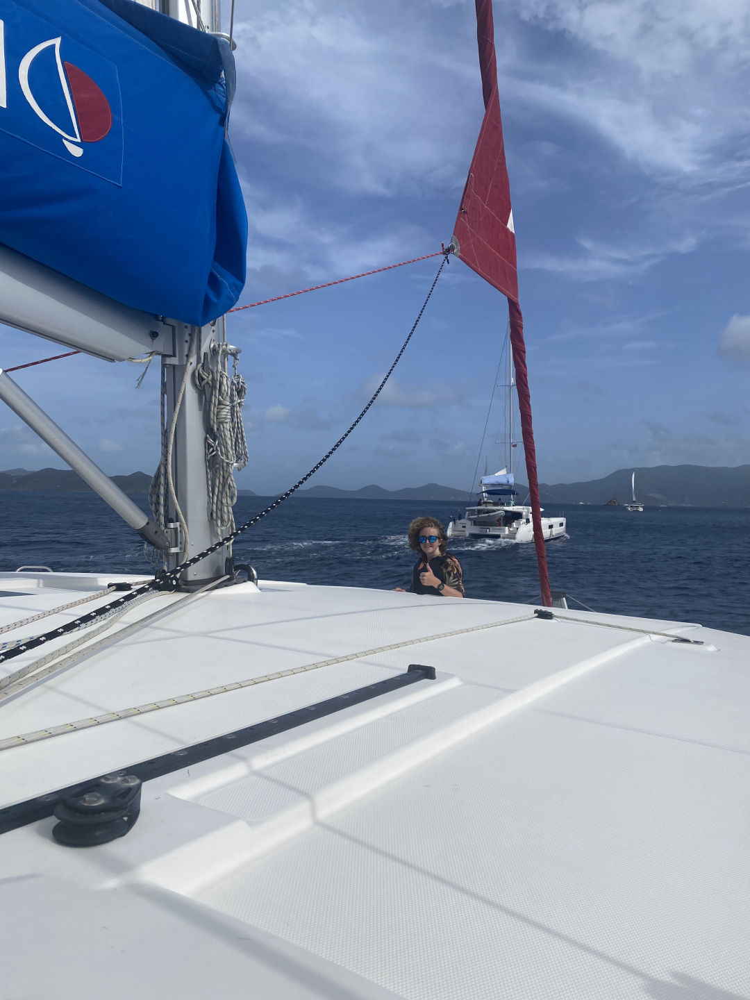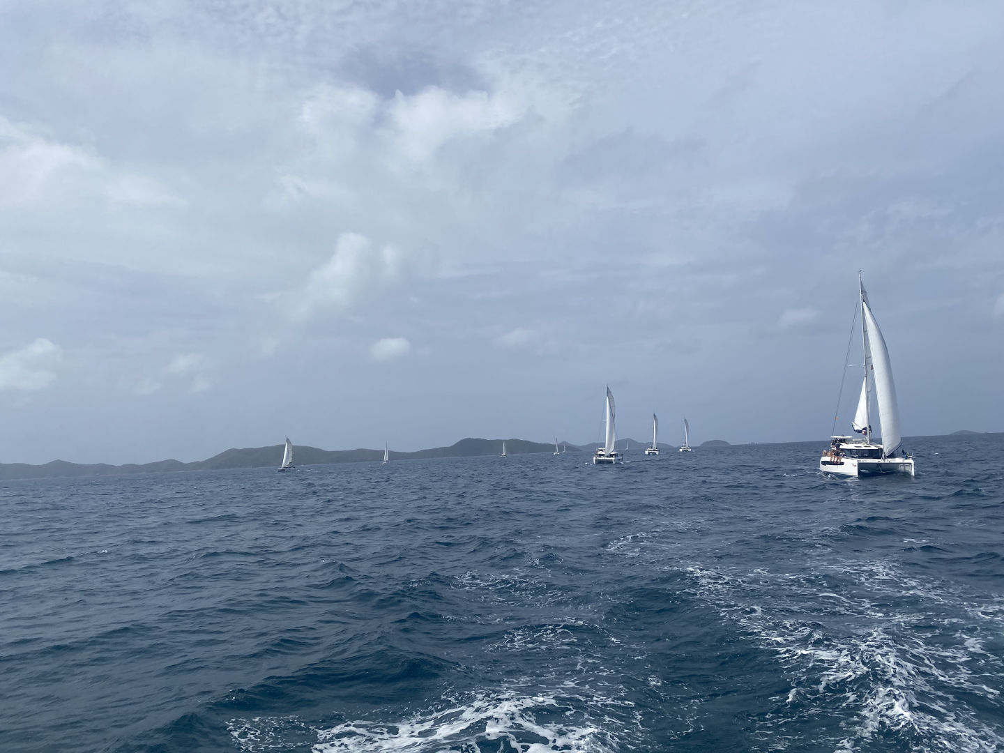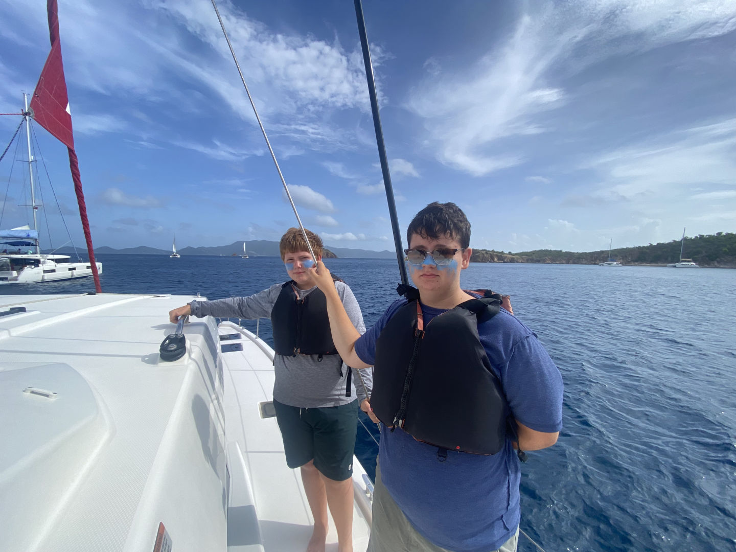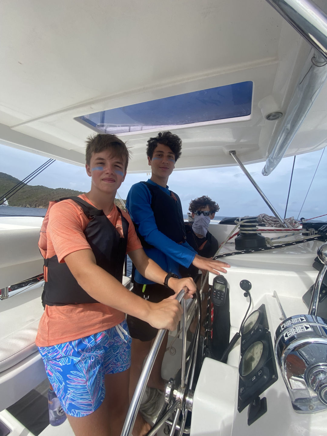 Today we woke up to hype music played by Davis to get everyone excited for the sailing race that was going to be happening today against all the sail side boats. Around 7:30, Mark, who was the student skipper of the day, went off to a skipper’s meeting on Mike Meighan’s boat with Margaux to find out all the details about the race for us. At this meeting, he was told we were going to be starting our race right outside of The Bight, Norman Island, then tacking around a green channel marker in Road Town and finishing the race in Great Harbor, Peter Island. Once he was back, to get the boat ready to race by getting everything 40/40 and getting our main sail up. After that was done, Davis pulled out some blue zinc for us to wear, and we put our PFDs on inside out so they were black, not red, for the race. Next, we slipped our mooring ball and started to motor (with our main up) to the start line of the race. Our starting line-up spot was right in the middle of the whole fleet, which Margaux said is a good spot as it gives us a good wind direction. Our next task was to get ready to raise our jib but wait until we heard the final countdown to pull it out as quickly as possible. When the time came, Ari and Aidan got our jib out super efficiently and took off in the front of the fleet. We were able to pass a couple of boats during the first leg of the race, and we were sitting in first when we approached the green marker to tack. Unfortunately, we did not have our most clean tack, but because of the distance we gave ourselves between the other boats on the first leg, we stayed in first after our tack. From this point, we just had the final stretch of the race left; Mark held our boat in perfect position, Ian and Nicholas worked on ensuring our sails were trimmed perfectly, and Theo kept an eye out for the yellow marker in GHP, which indicated the finish line. Eventually, the yellow marker was spotted, and we all held our breath and stayed patient so as not to celebrate too early (as we were still sitting in first) as there were two boats very close behind us. Five minutes later, we crossed the line, and we all erupted into celebration as we Won!!!!! This race helped us to prove to ourselves how much we had learned about sailing over our three weeks here.