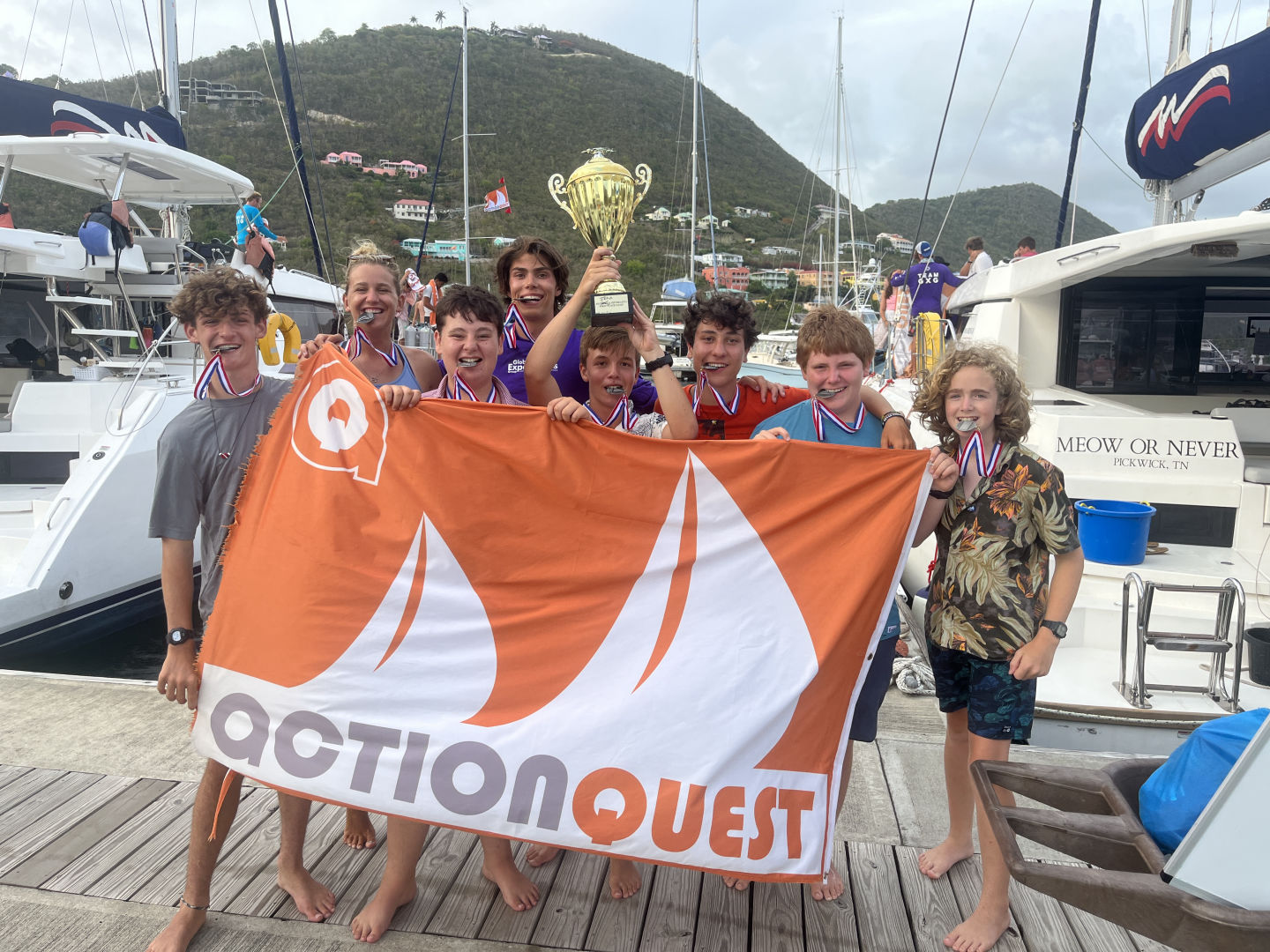After we finished the race and had a proper dance party to celebrate, it was, unfortunately, time to clean up our boat and pack up to go home tomorrow. We all split up into jobs and got the cleanup done as quickly as we could. Once arriving back in West End, Tortola, we got the boat on the docks and finished our cleanup. After clean-up was done, we devoured pizza and then were given some shore time to go hang out with students on the other boats and obtain our final souvenirs. At 5:30 pm, we returned to the boats to do our final squeeze, taking pictures with our AQ flag that we later cut up into pieces as a memory of the trip and being given our medals from mike that we earned from winning the race. It was now time for our final BBQ, so we headed down to Omar’s Fusion, where we ate burgers, hot dogs, rice, curry, and so many other yummy things. After the BBQ was over, we headed to our final meeting with Mike, where he talked about what future programs we could do, reading us “Oh the Places you will Go” and just talking to us about our experiences. Once the meeting was done, we were allowed to hang out with the other boats till 10:30 before returning to our boat to go to sleep. Overall this trip has been truly amazing, and it’s hard to believe our three weeks here have finally come to an end.