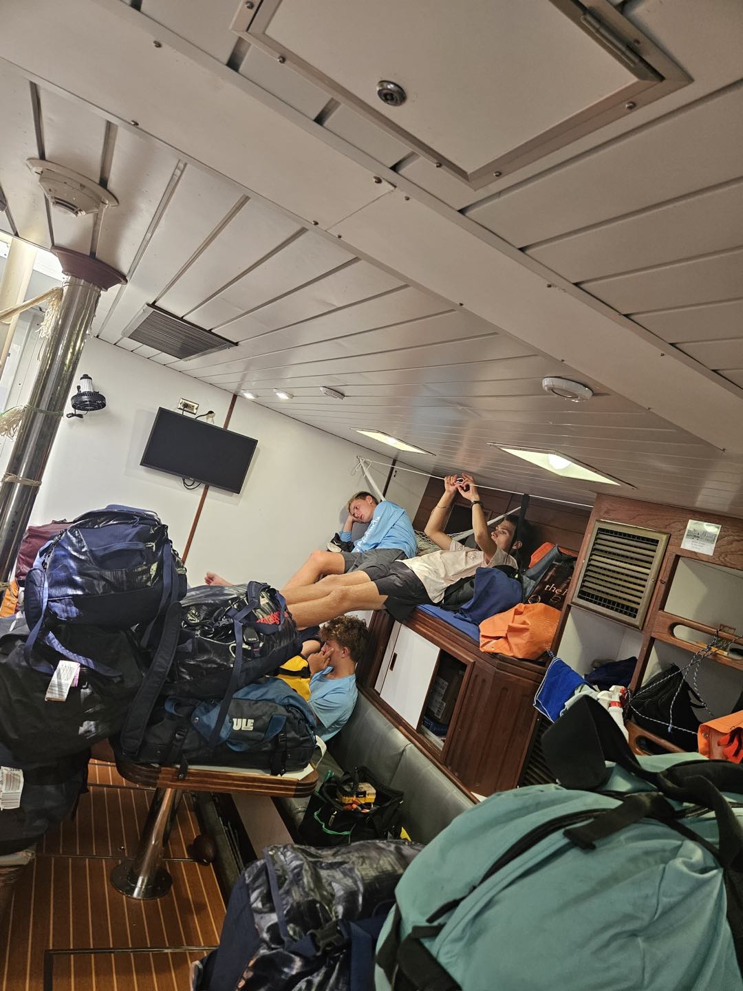 It has been a crazy ride these last 38 days, but today is the last full day on board Argo for this crew of 32 people. Today was full of lasts. Last time the chef would forget to wake up and cook breakfast, last (full) meal on Argo, last count off, and last squeeze. Today started off pretty slow as many of the crew were up late finishing up their cards and taking time to sit down and have some final guitar sessions. After doing three rounds of wake-ups, I decided it was time to use the lights to my advantage, so after turning on every white light up forward to brighten things up, the crew crawled their way out of their bunks and moved their naps to the cockpit so they would be ready for cleanup.