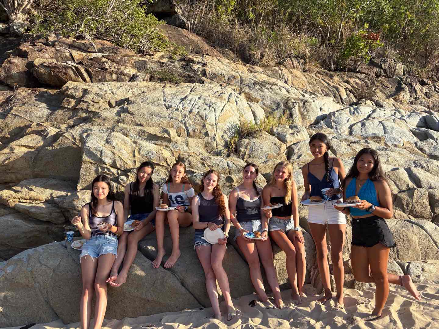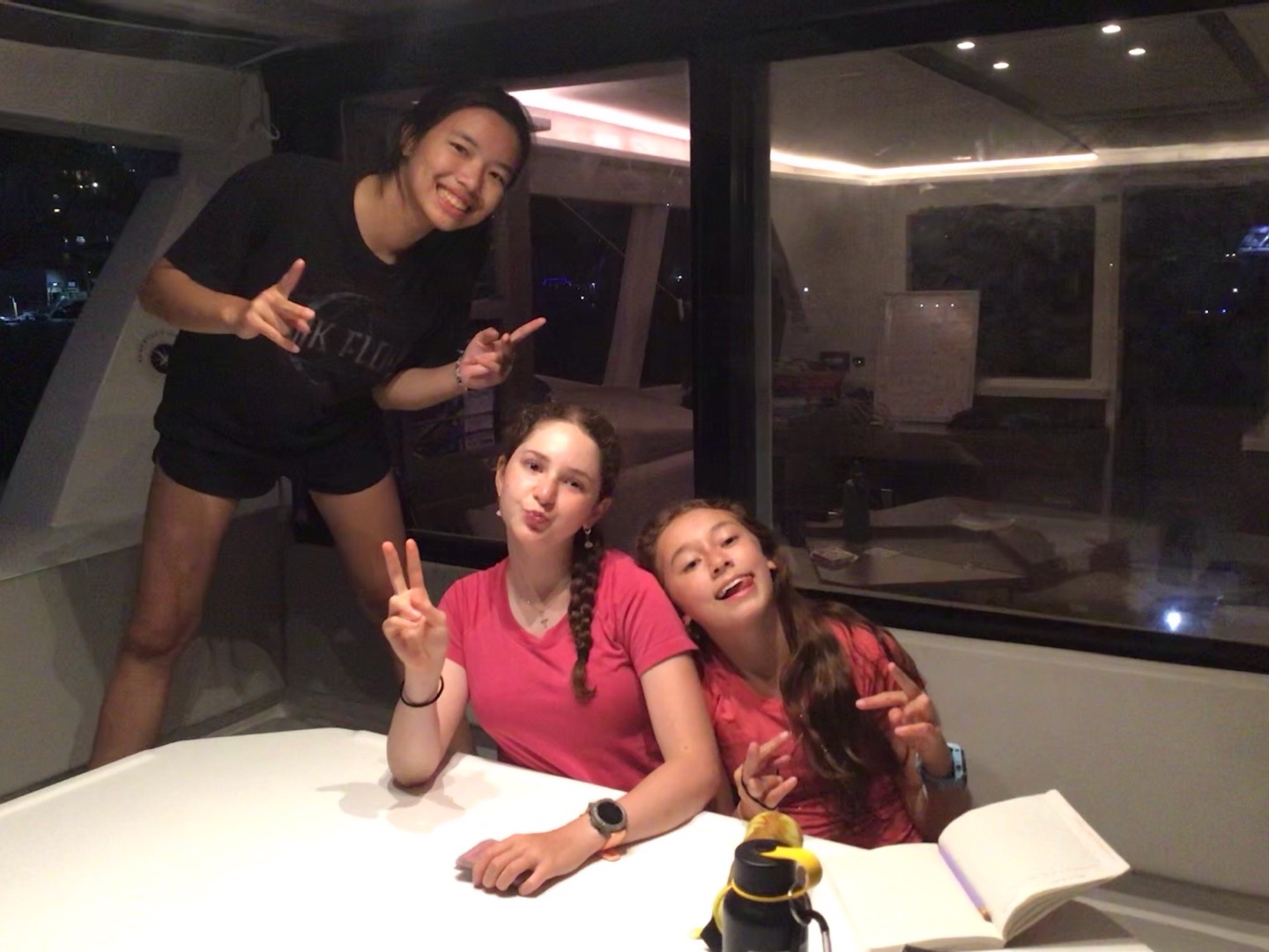 We started out tired and early at 6:00, and quickly started breakfast, thanks to gopher Sophia, followed by a quick dishy pit from Mengmei, Sophie, Blake, and Pierce, who did dishy pit as fast as possible. We quickly got ready to go to the dock, where we started the hike. The hike was around 6-8 miles from the top to the bottom of the island. It started out really steep, but leveled off around 800ft up. It was long, hot, and tiring, but everyone on our boat did it. Izzy got lost for a little bit but found the correct trail and eventually made it to the top. After reaching the top, we had a quick smoothie break before heading down the mountain. As we went down, Breccan got a whole box full of Oreo’s, and got a few mangos, too.