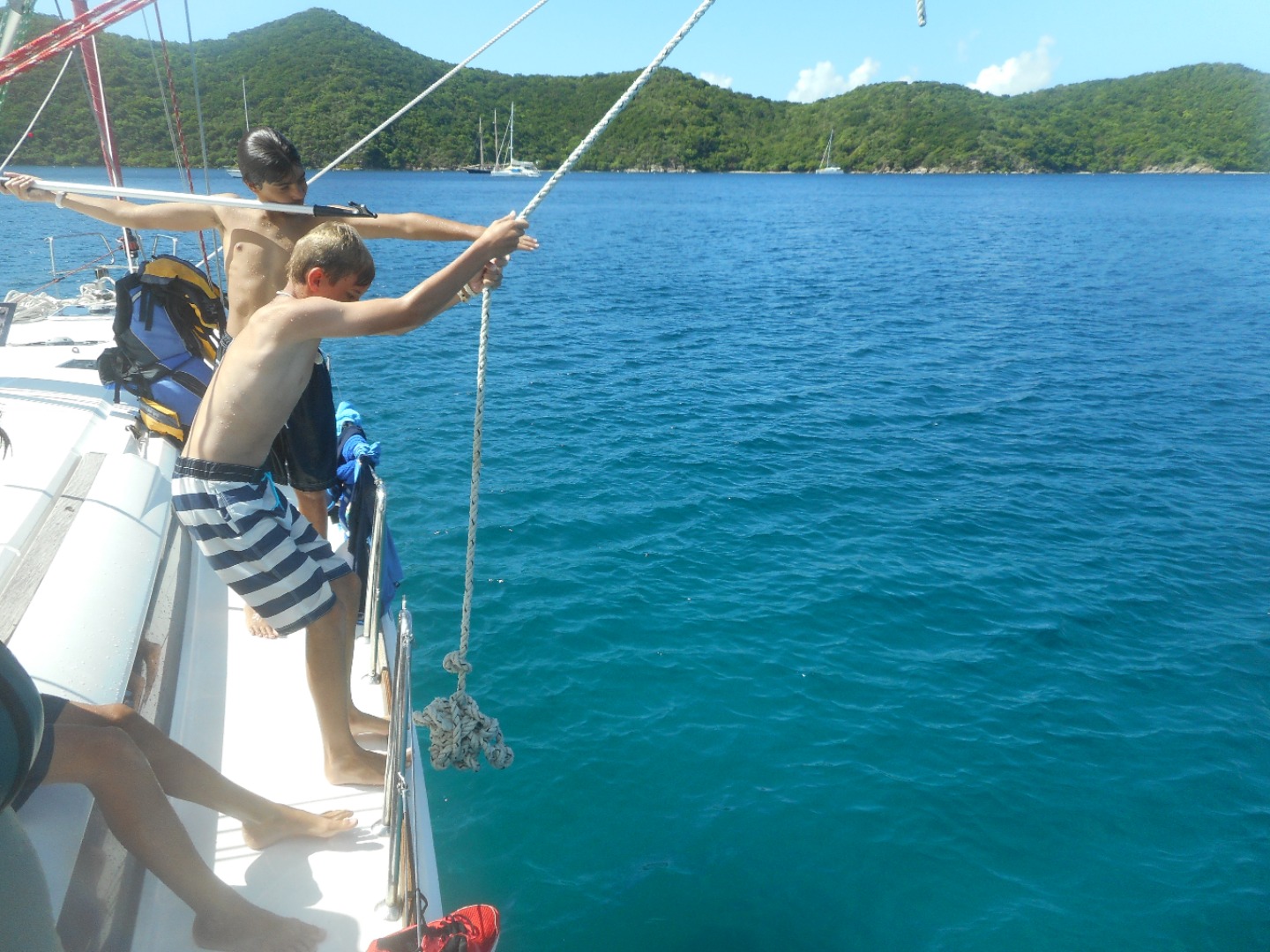 As our ActionQuest experience draws to an end, my shipmates and I begin to dread our return to the reality of the real world; we begin to prepare ourselves to say goodbye but keep lasting ties. Many of us have already sworn our return to ActionQuest next summer and years to follow. We also have begun to unwind and our crew has become increasingly “energized” and wild; and although this is surely given our staff some headaches, we are all in good spirits. This morning after leaving Peter Island we made our way to Road Town for lunch and a walk around, then we set sail for Norman Island where we are to anchor for the night. After anchoring the staff departed for a meeting, leaving us alone. I will not specify what occurred below deck after that but I will say it included hair braids, fly swatters, presidents, hand sanitizer, and other random things. We did manage a hasty cleanup after our realization that the staff was returning and dinner was not even on the table. We barely finished, but not without screaming, laughing, pointing, and a lot of running around and shouting. Finally, we sat down for dinner and watched the sunset as if nothing had happened… date: Aug 13, 2017