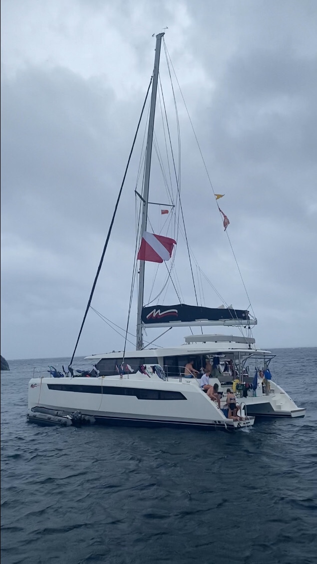 Today, we had an early start to our morning with some sailing to The Rhone. The waves were super bumpy on our way there, so most of us were already awake when we got there. As soon as we got to The Rhone, we ate a quick breakfast and started setting up dive gear. Sadly, Ainsley couldn’t swim because of her ear infection. Sophie continued her streak of being able to equalize! Lucas, Asha, and I went as our first dive being certified! We saw many different types of sea creatures during the dive, including a very scary lobster. Kiara and Max got to dive twice. After the dive, we took showers. Lily, Asha, Enya, Lucas, Declan, and I all jumped off the bow of the boat into the water. For dinner, the counselors left for a staff meeting, so we were challenged to make dinner by ourselves. Our dinner included garlic bread, mashed potatoes, Mac and cheese, cookie cake, and crumb cake, and Max made a PB and J. Although we made a bit of a mess while cooking, we made sure to clean up after ourselves for the most part.