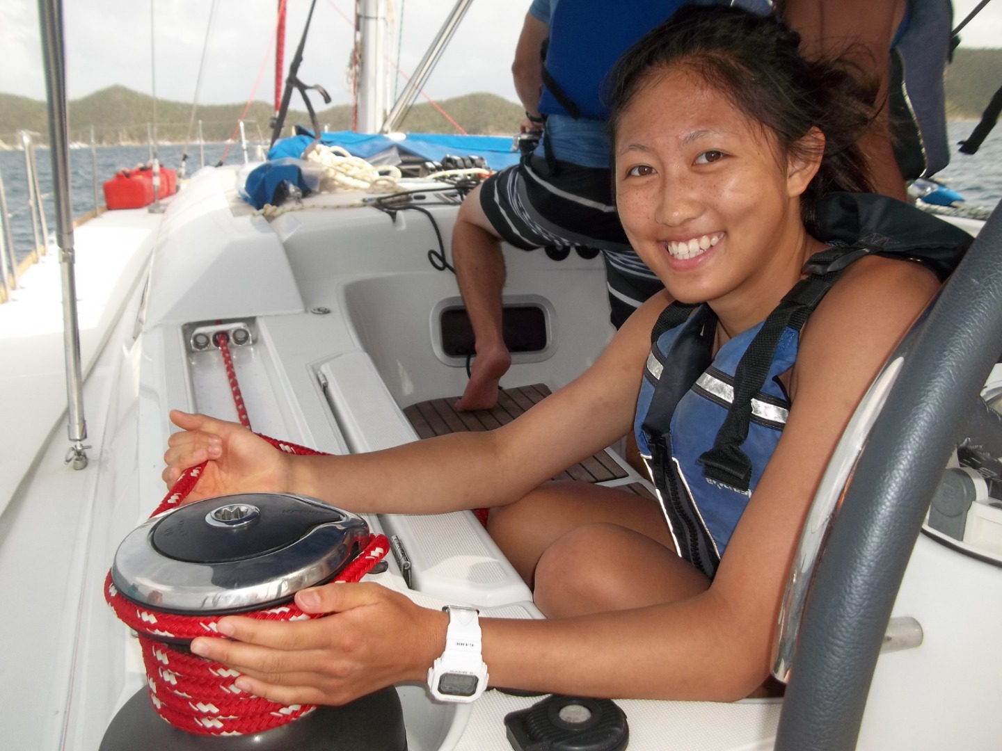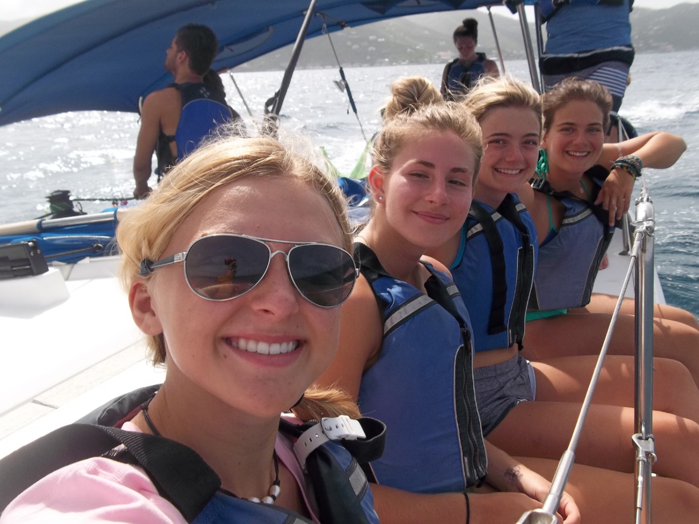 We started today off great with wakeboarding and waterskiing. After everybody took a well-deserved nap on the bow. Then, we started our short sail to Road Town, the capital of the BVI. Our whole boat ate an amazing lunch and splurged on candy and ice cream. Then we were off to Peter Island. This time, we had to sail without the help of the staff. Finally, we arrived in Great Harbor, had breakfast for dinner, and had our final sail chat. We can’t believe that time had gone by so fast, so we are cherishing every moment we have left.