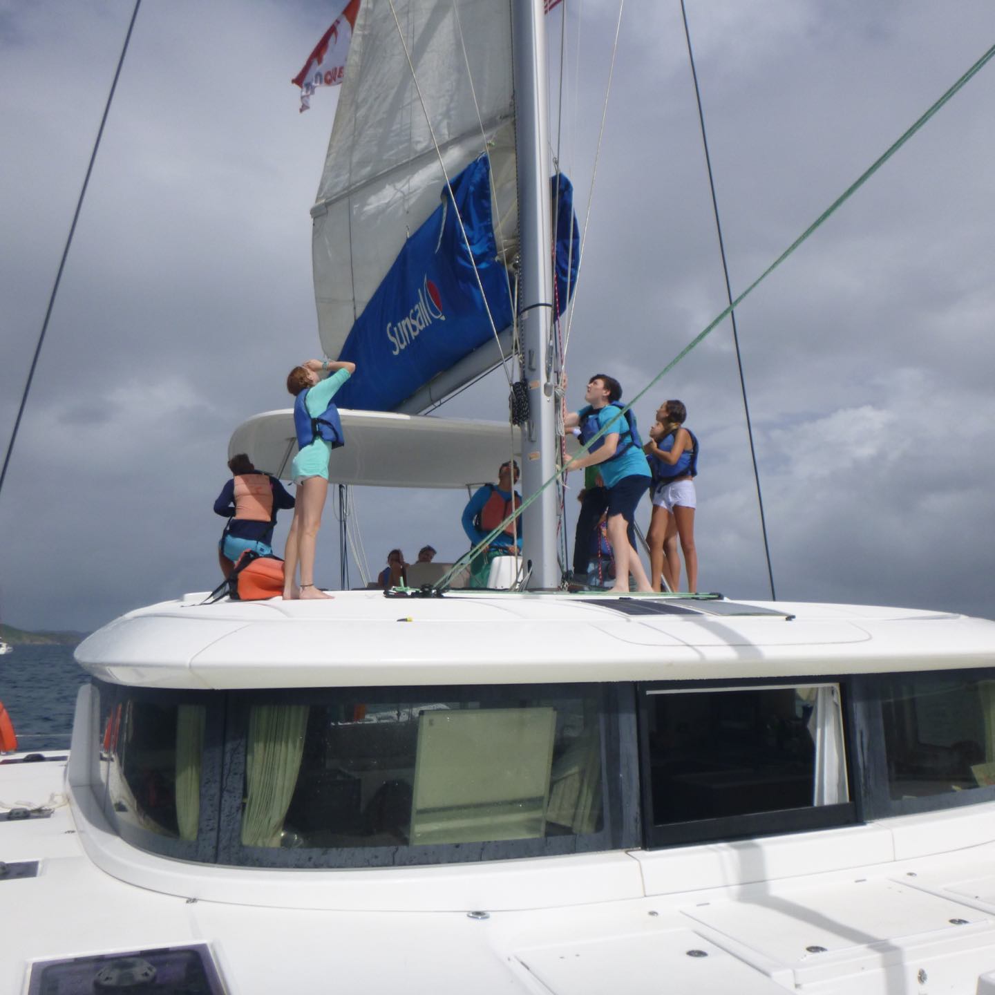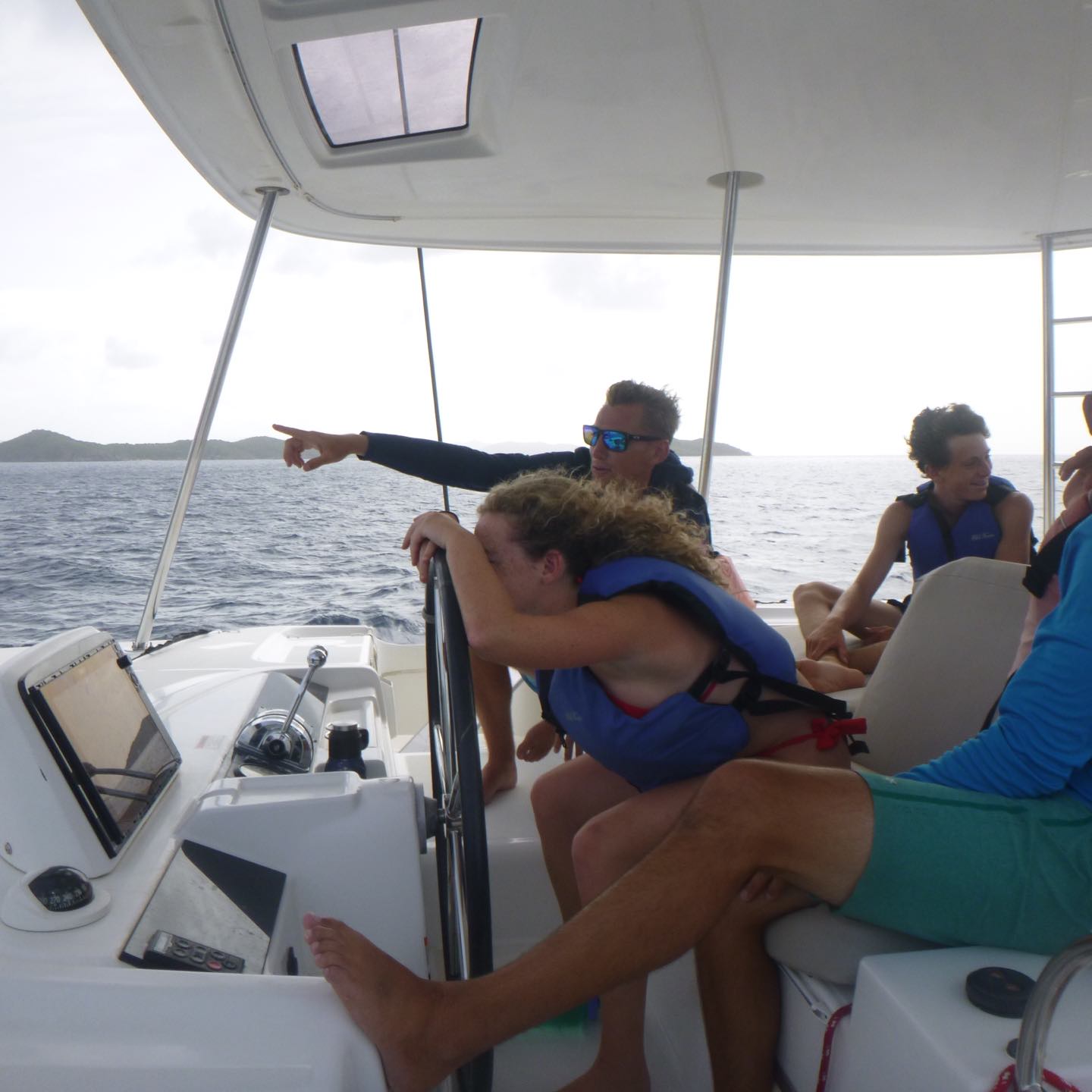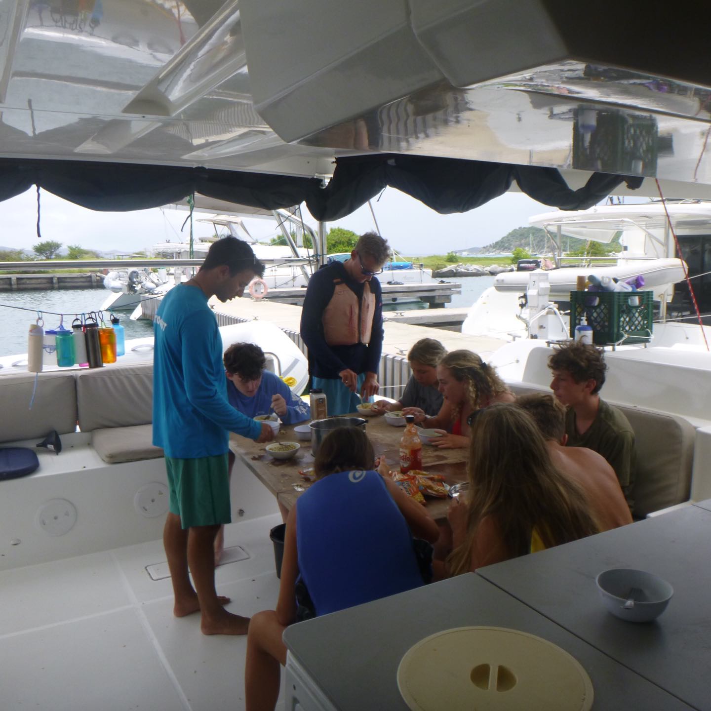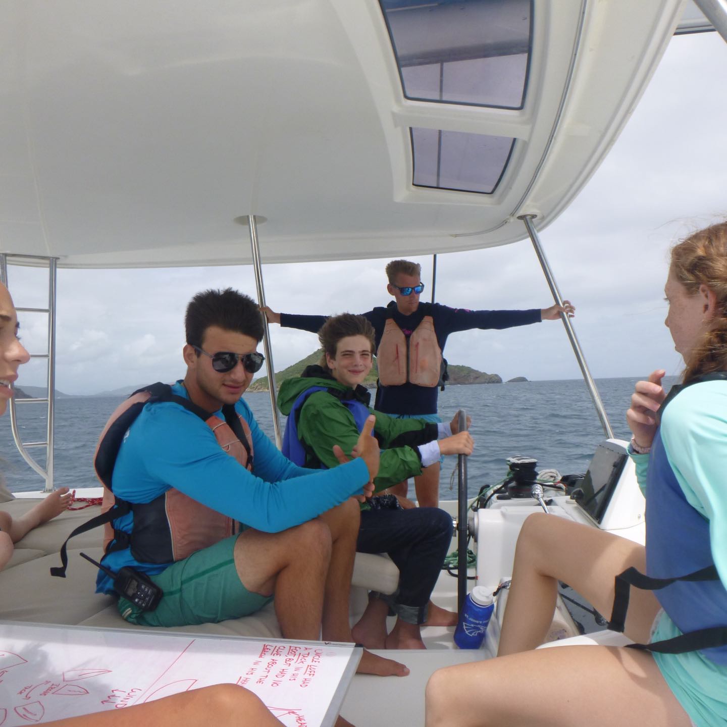 Most of the first group made very good tacks and good sail adjustments. We passed so many Islands. One was Sea Dog Island. I especially paid attention to this island because it, well, was shaped exactly like a seal or sea dog. I guess it had a strangely shaped head and fins… Like an actual sea dog. I certainly thought it was interesting. We passed it twice, and each time, we all got a good look at it. It was certainly one of my favorite days—just all sailing and nothing else. Everybody got the chance to get their hands on the wheel and the lines. For lunch, we again docked at Spanish Town and had quick ramen noodles. We also refilled on water. For the 2nd group, it was comprised of Me, Gavin, Cameron, Katy, Pearl, and Kennedy.