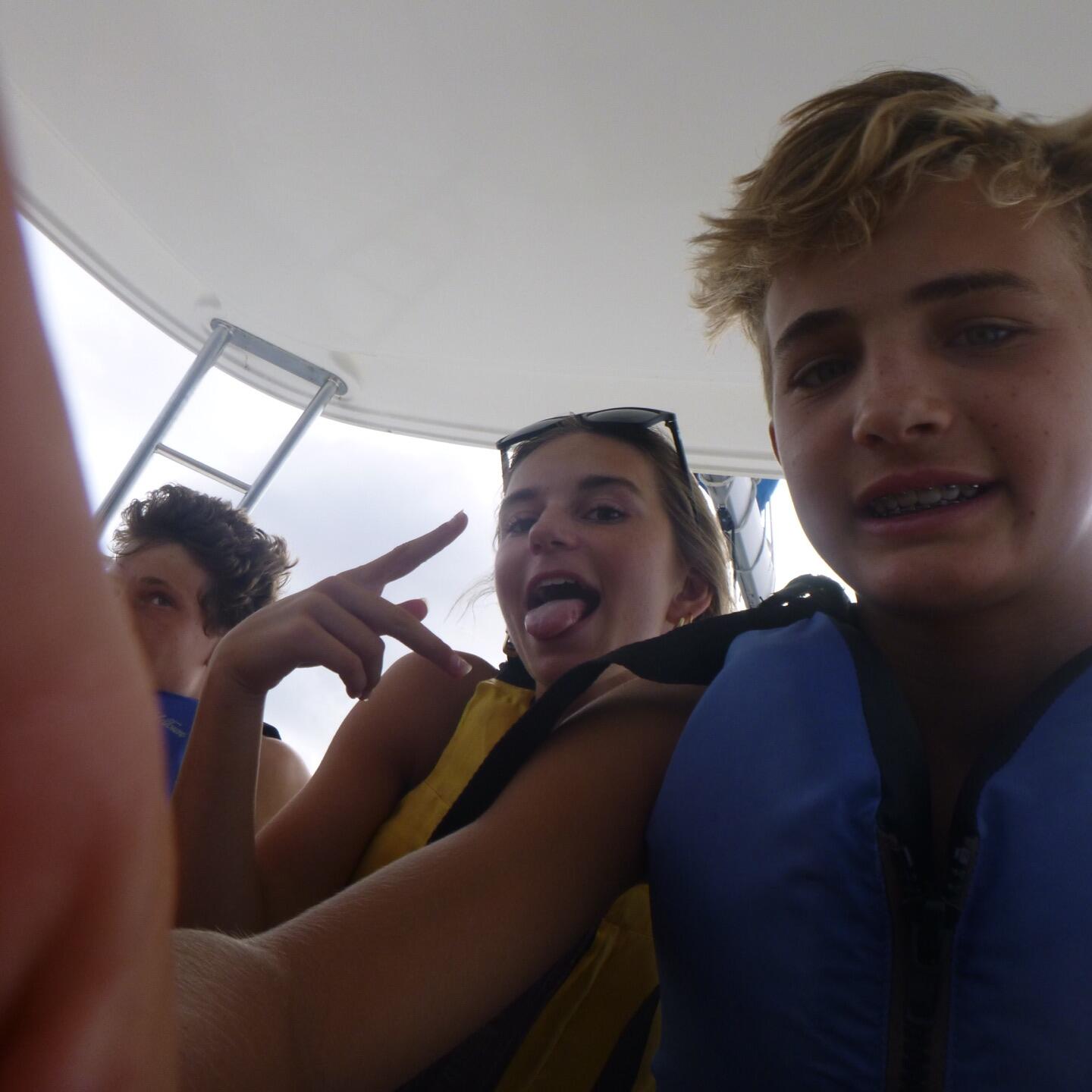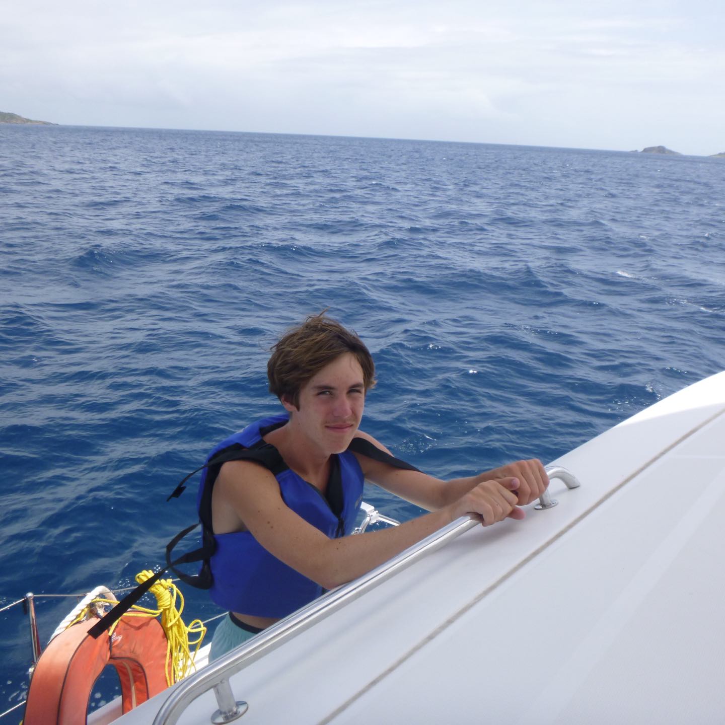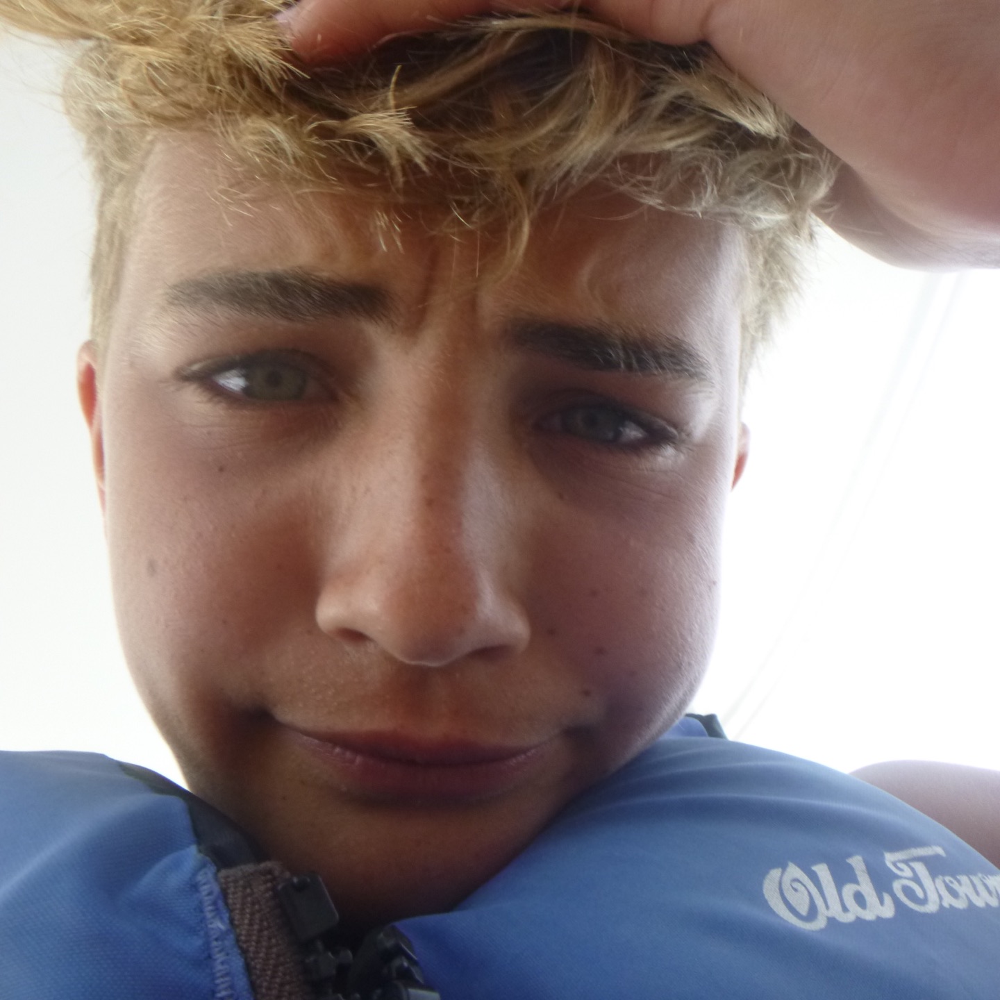 Today, I woke up late along with the rest of my crew mates because I, along with Cameron, Dawson, and Holden, went night diving. This morning we had breakfast in which we had breakfast burritos that had eggs, salsa, bacon bits, cheese and hot sauce. From 9:30 to 10:00, before we began sailing, we started the sail-training part of camp. Although we have sailed previously, this was the first actual sailing class. The first teaching group (both were taught by our Skipper, Mike.) was comprised of Suki, Andrew, Liliana, Holden, Dawson, and Amaya. All of them did very well and made perfect tacks. (A special sailing maneuver.)