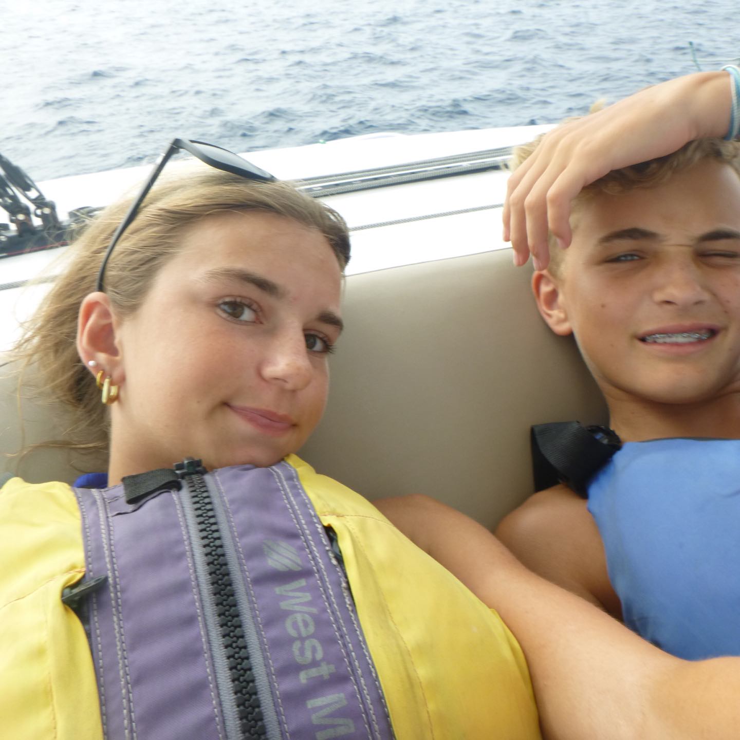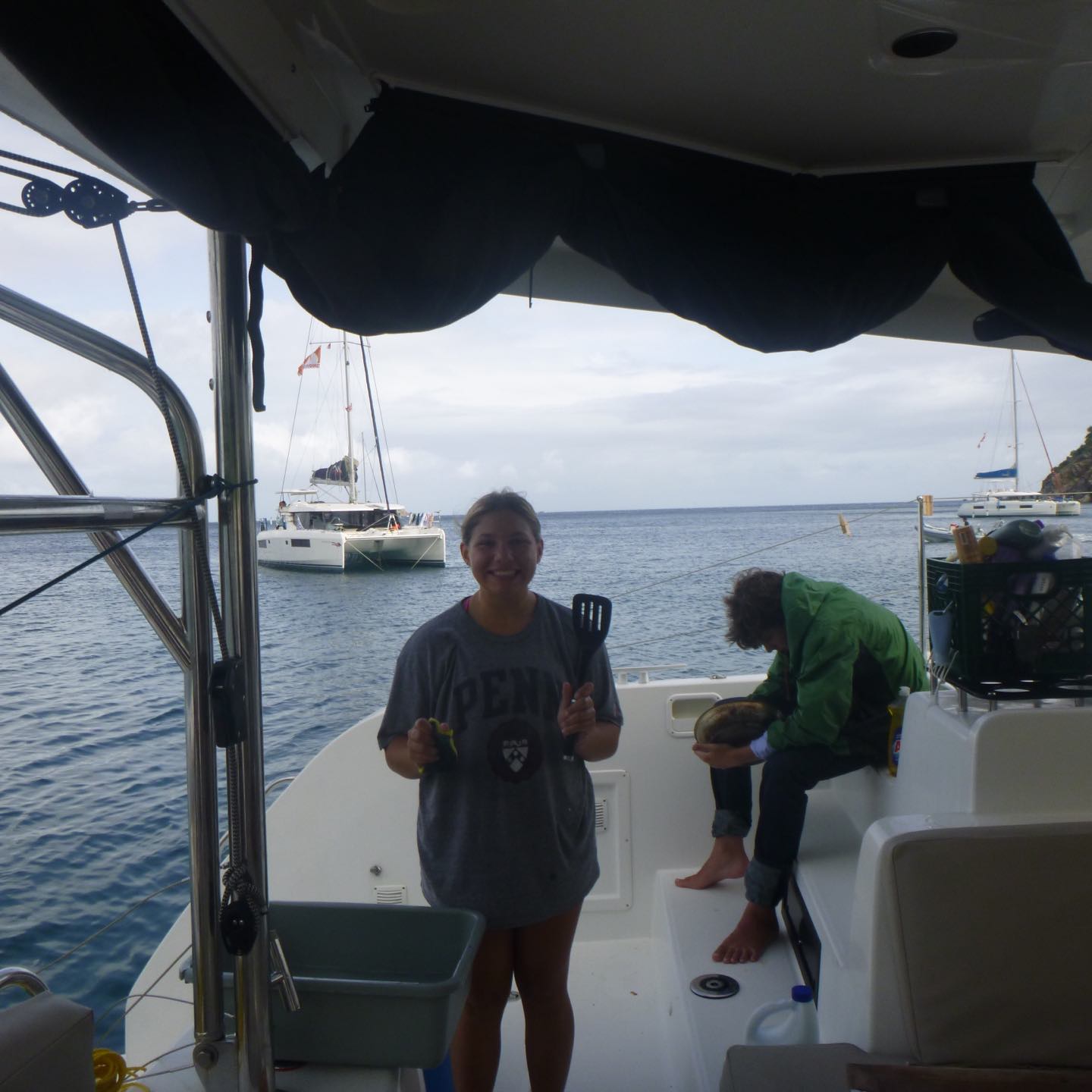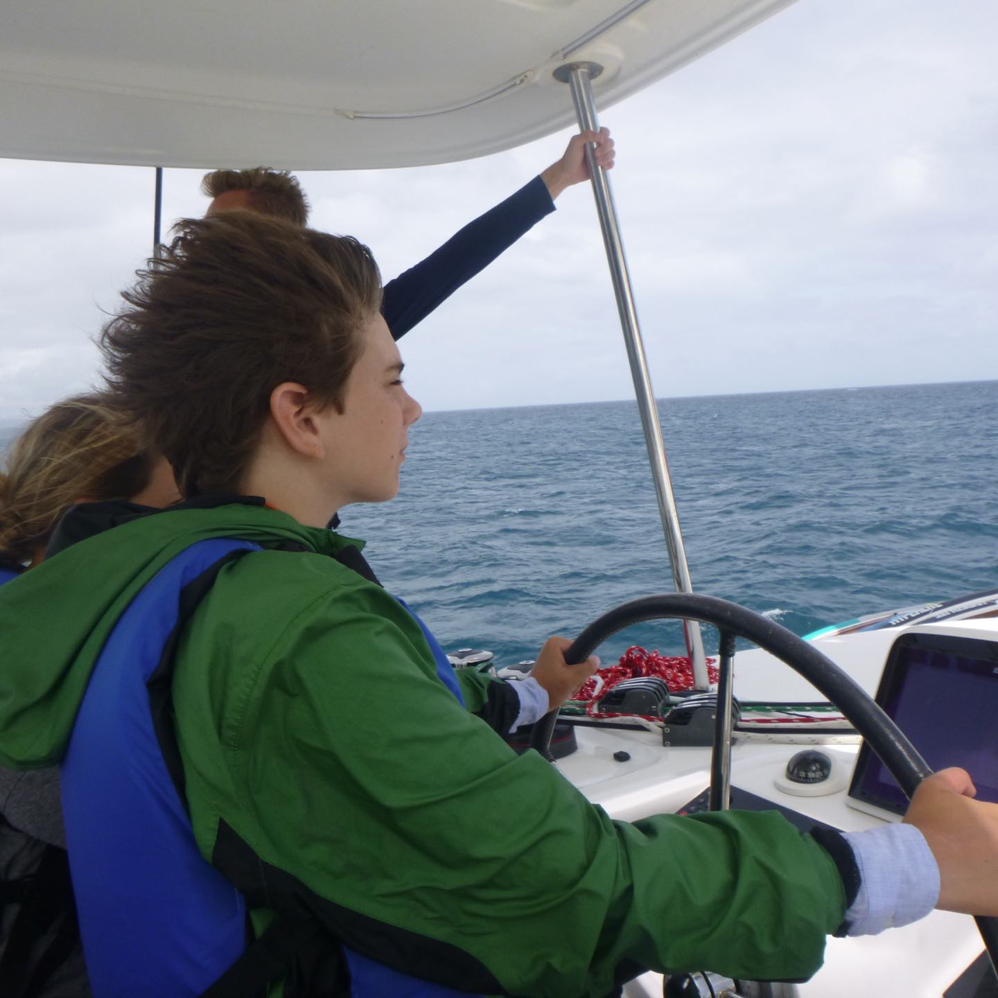 Today, I woke up late along with the rest of my crew mates because I, along with Cameron, Dawson, and Holden, went night diving. This morning we had breakfast in which we had breakfast burritos that had eggs, salsa, bacon bits, cheese and hot sauce. From 9:30 to 10:00, before we began sailing, we started the sail-training part of camp. Although we have sailed previously, this was the first actual sailing class. The first teaching group (both were taught by our Skipper, Mike.) was comprised of Suki, Andrew, Liliana, Holden, Dawson, and Amaya. All of them did very well and made perfect tacks. (A special sailing maneuver.)