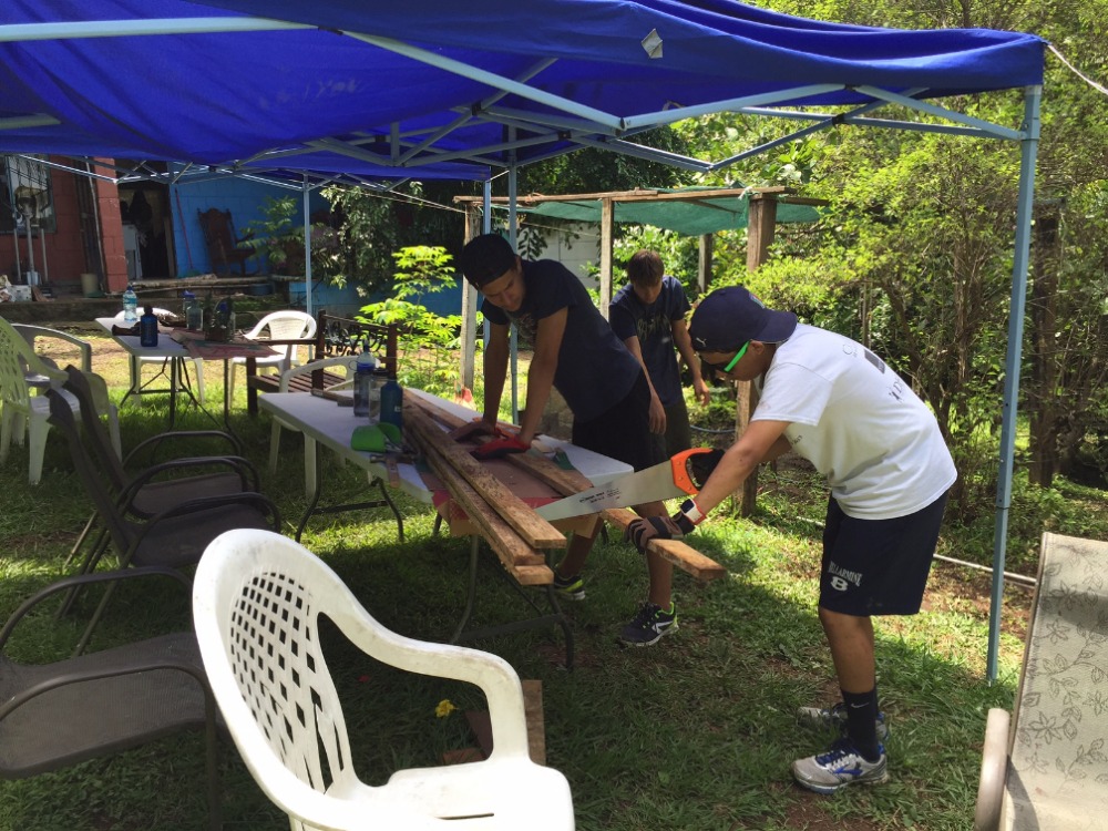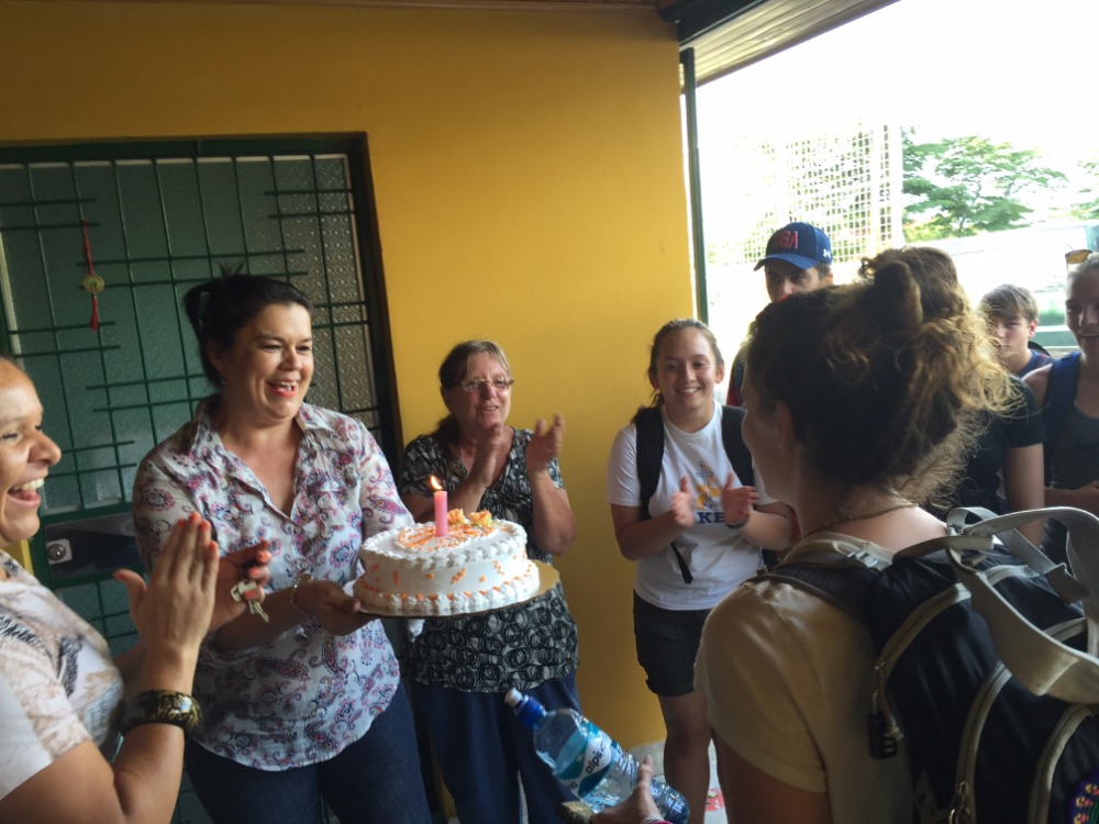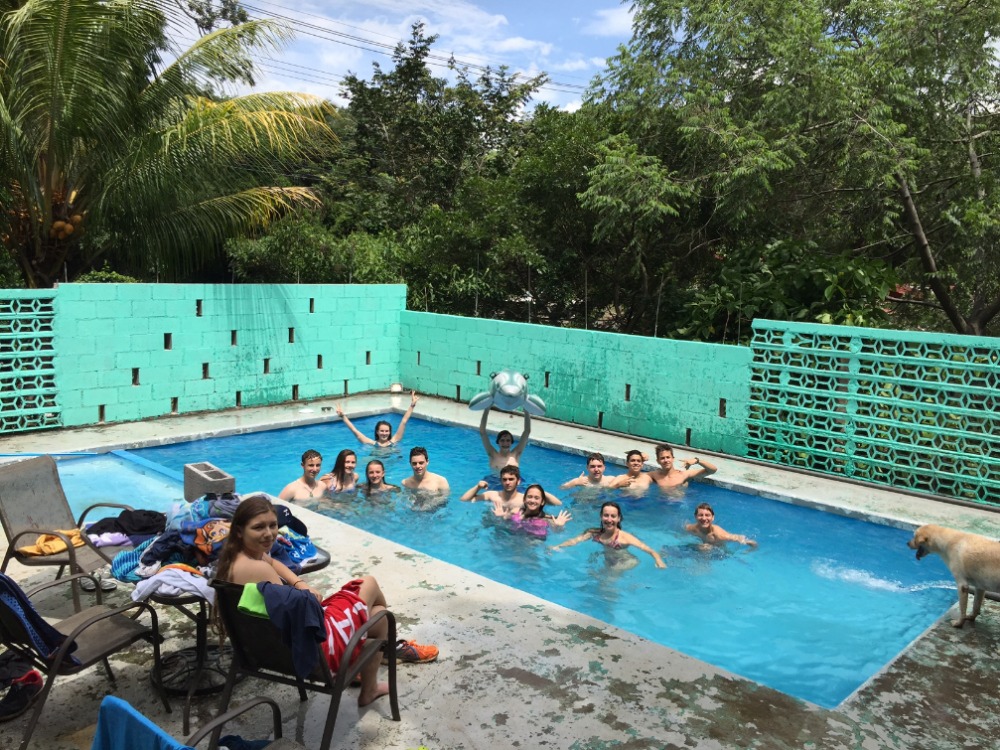 Today we packed up to leave Dos Palmas Hotel to meet our host family. But first, we went to La Finca to do some work. We continued our projects that we started yesterday, some on the pool, others doing gardening around the complex. After working all morning, we grabbed a snack and headed for the pool. Everyone was fighting to get on the blow up dolphin! Then he dried off and went to lunch for some fried chicken at a local restaurant. Finally, we are going to meet our host families who we will be staying with the rest of time in Costa Rica. Once we met our new mom and dad, it w as great to finally get a traditional home cooked Costa Rican meal!