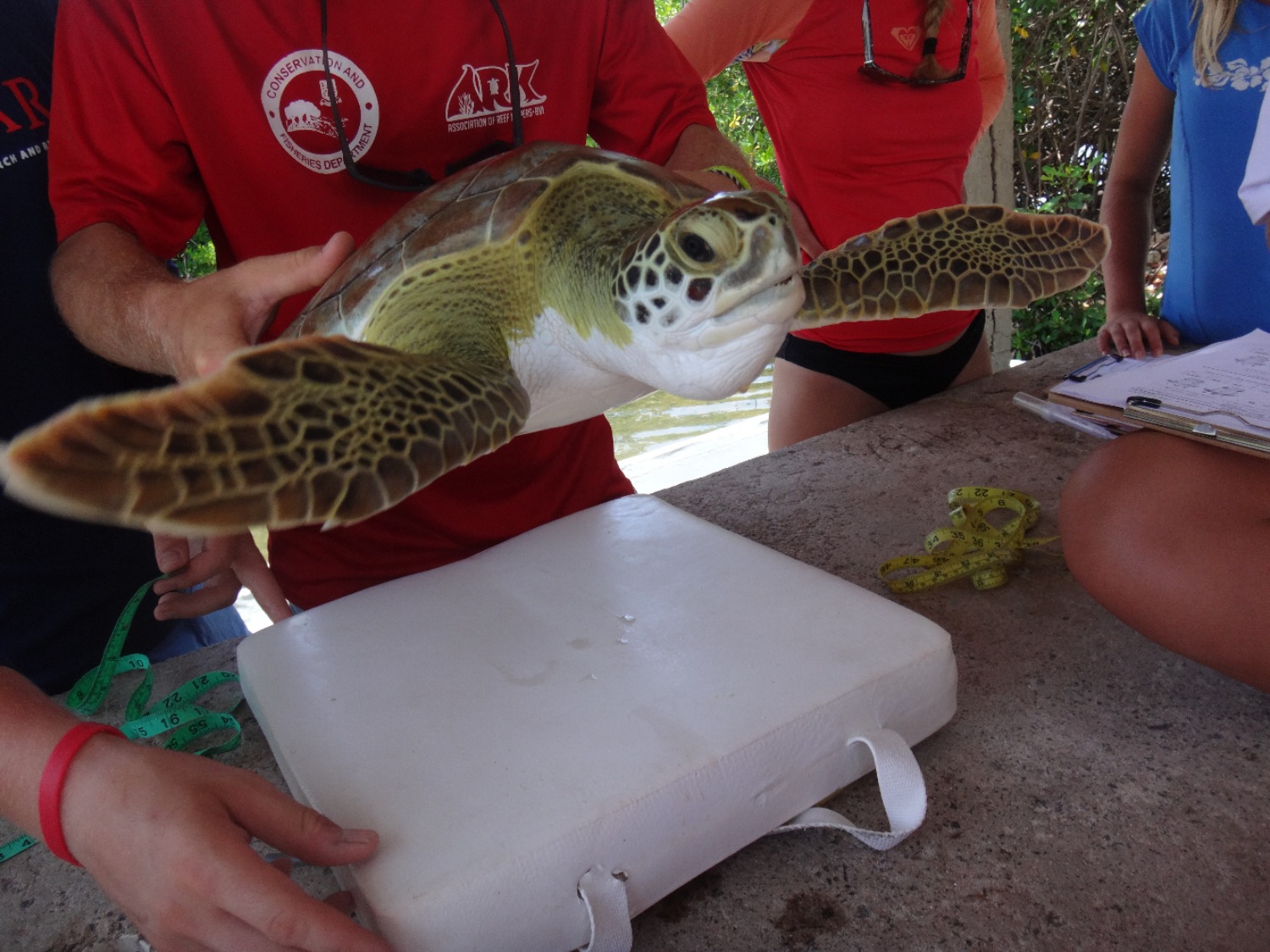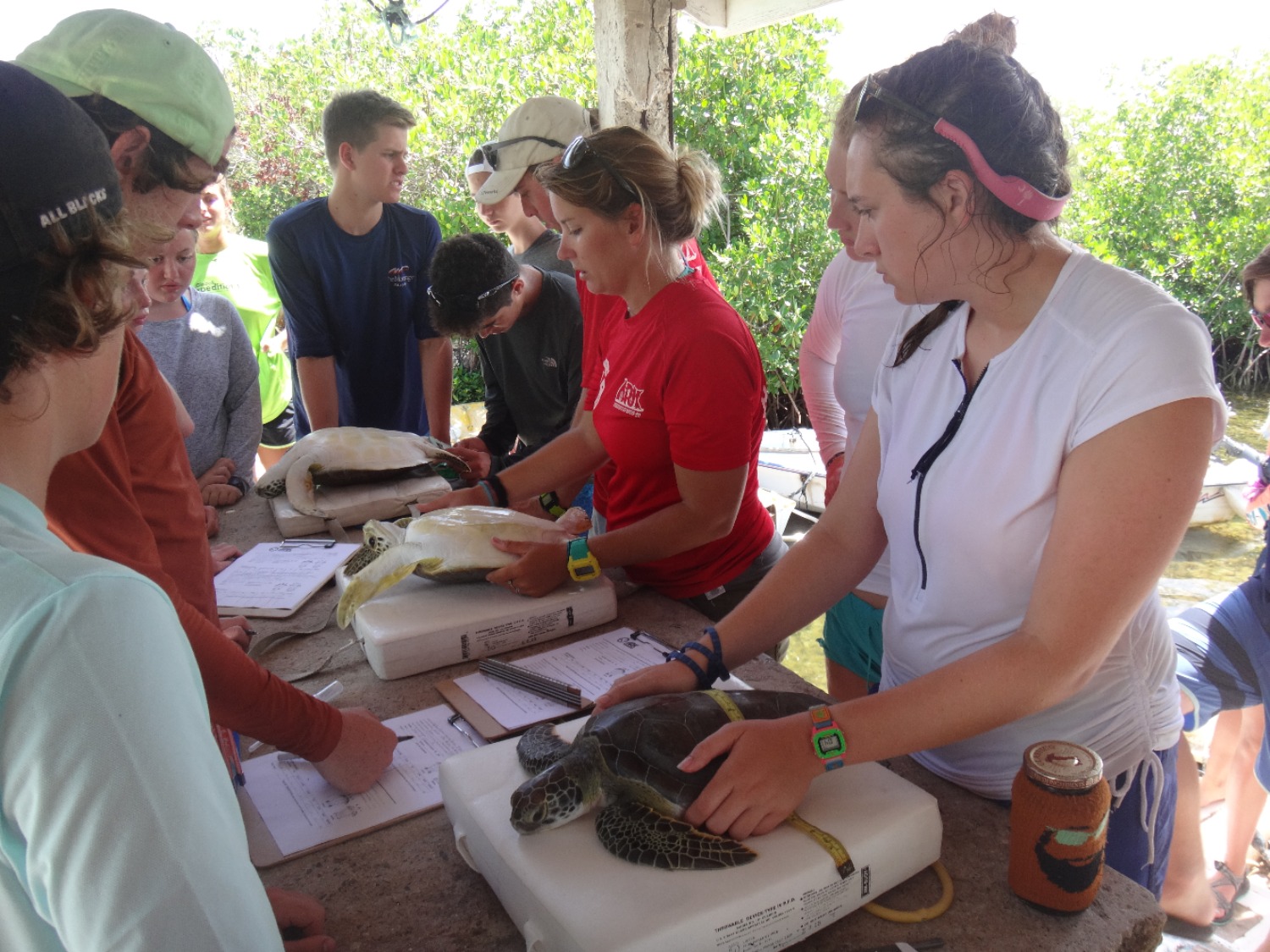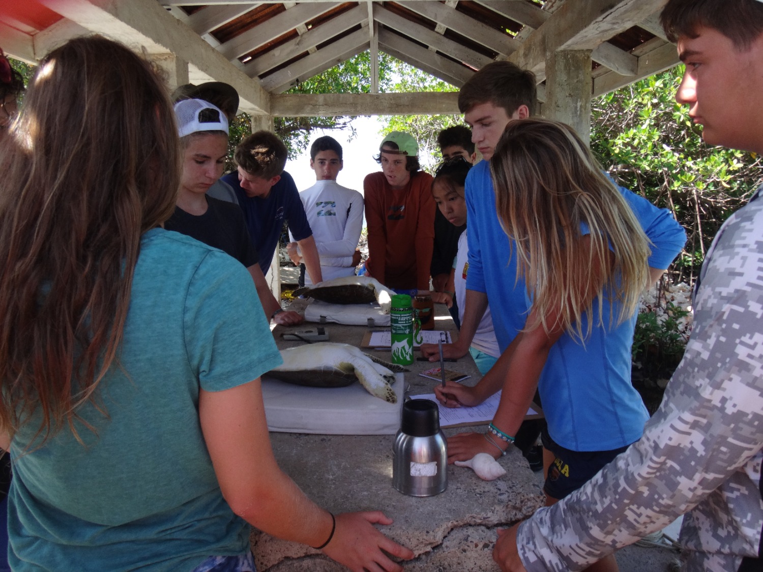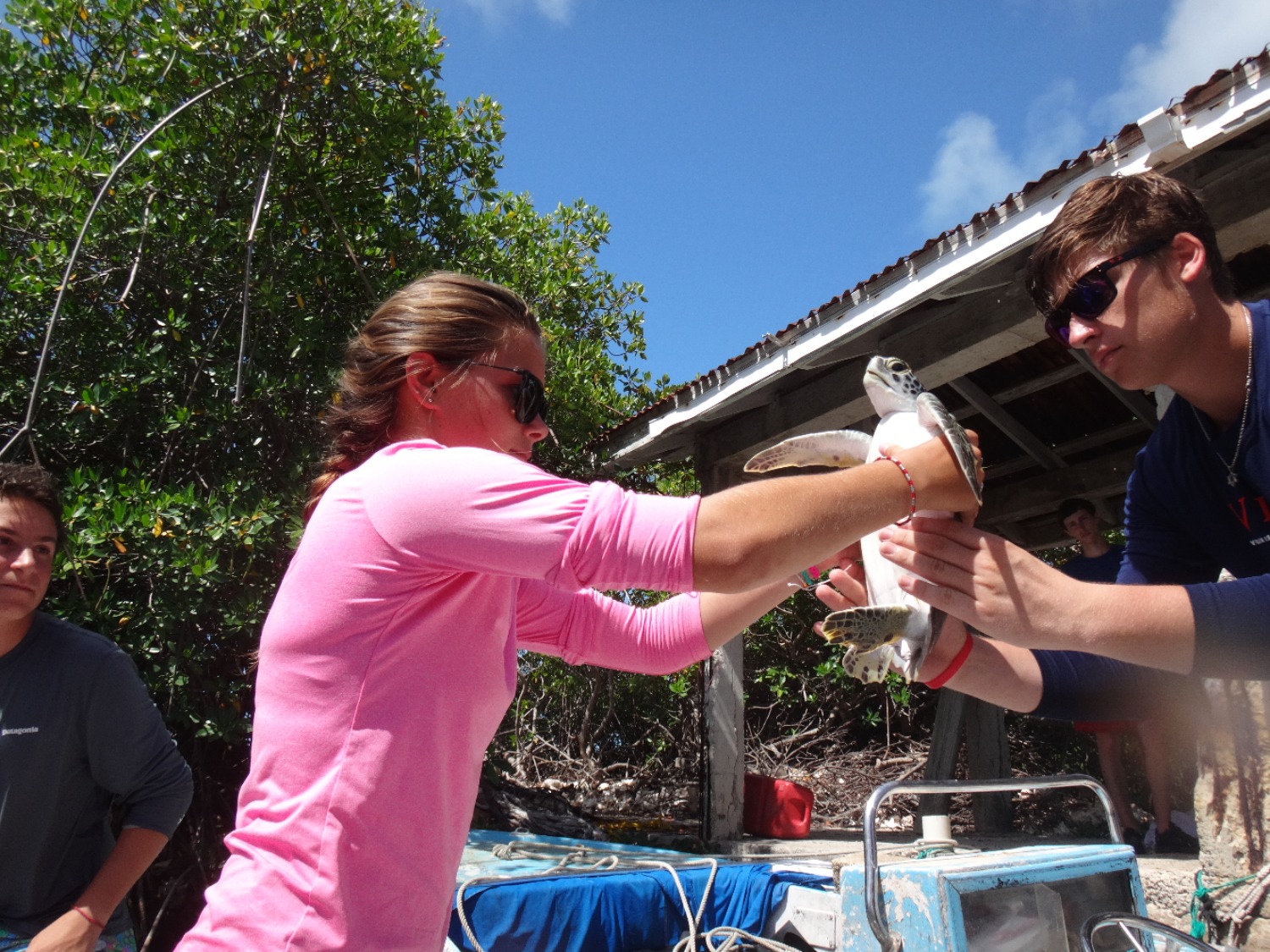 So today was a full day of turtles. Our day began with Jules going around yelling “Turtles, Turtles, Turtles!” while jumping up and down. Once we got to the fisherman’s wharf to turtle tag, we had to be extremely quiet. A little while after we got there, a group of people and I got in the small boat and headed out to catch a turtle. Five to ten minutes later, we came back with a turtle that we later named Jaws. His name came from the bite mark that looks as if could be from a shark on his left lower shell. After we brought him back, we did a bunch of different measurements and tagged him technically three times, one of each of his fins and a “pit tag”, which is in his neck. Very surprisingly, he didn’t flinch until we had to put him back in the water. Jaws was the “chillest” turtle ever and had a great day with him and all the Lifeworks family.