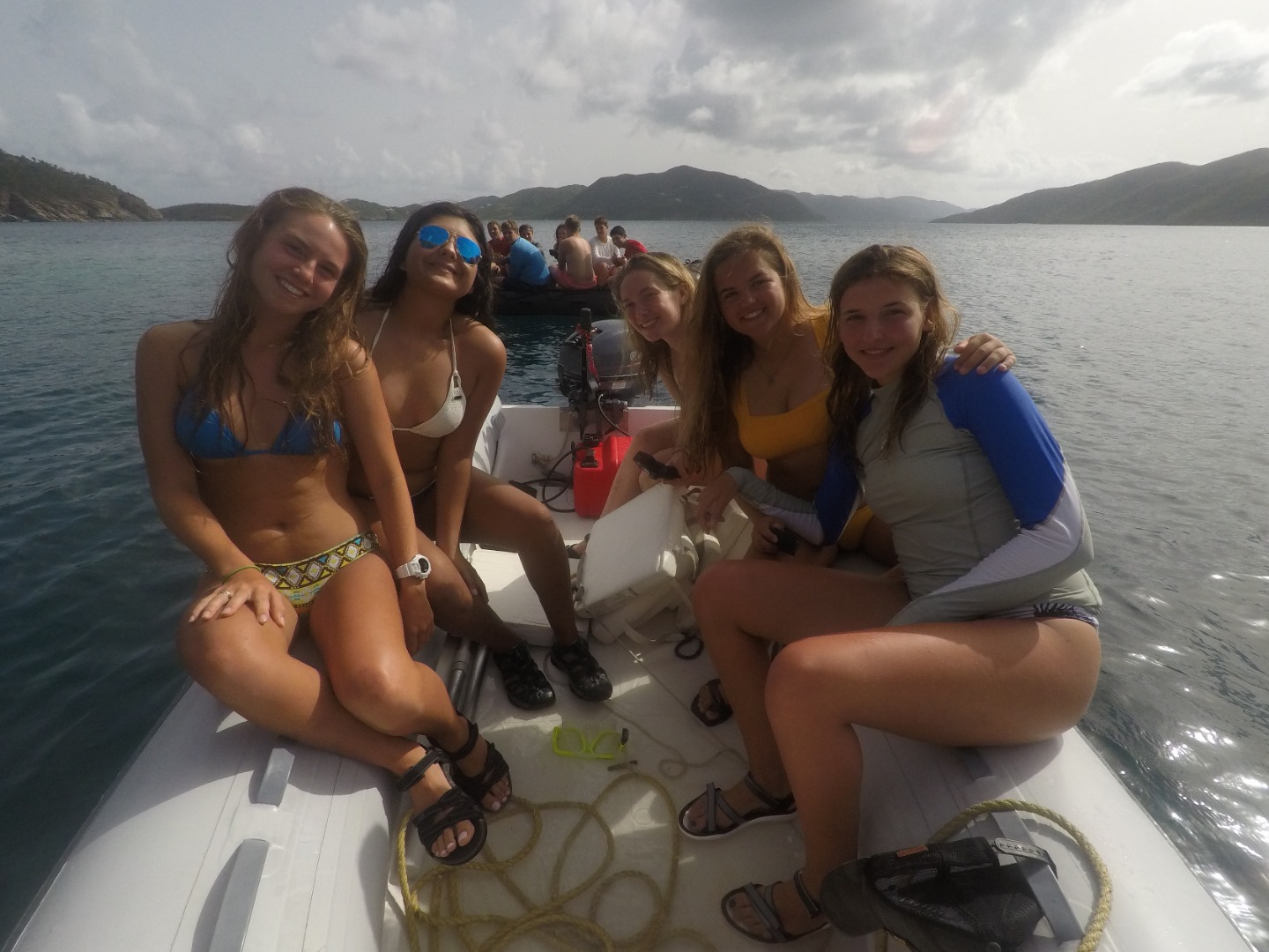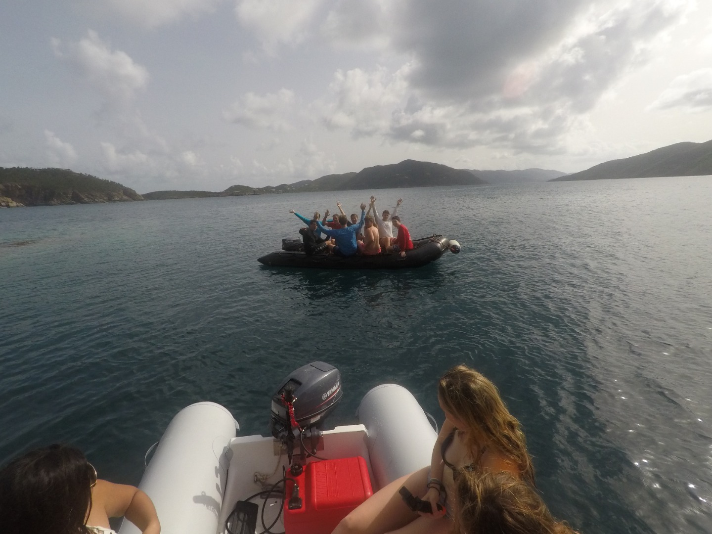 Today, we slept in and had pancakes for breakfast. After that, we went turtling and took turns being dragged into the water by the dingy while wearing snorkel gear. We didn’t catch any turtles because they swam too deep, but David caught a lionfish that we all got to look at the inside of a plastic tub. After we ate soup for lunch, we all climbed a 20-foot tall cliff and jumped into the ocean. For dinner, there was a barbecue on the beach, and all of Go Beyond and Action Quest were present. We had burgers, hot dogs, macaroni and potato salad, and had lots of fun.