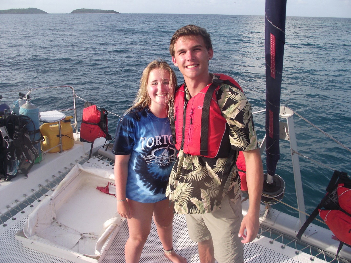 Today we woke up and headed to the playgrounds for our morning dive. Neptune’s had a fun dive while the dolphins did their digital photo dive part 2. The dolphin dive was good except for 2 out of the three cameras died, and we got lost, but it was still fun. After that dive, we had ramen for lunch and the rest of the afternoon was chill. Dolphins worked and finished their assignments for their research project while Neptune’s had the opportunity to dive and clean for boat appreciation. After some of the Entertainer crew dinghied to the tropical oasis to try out the halyard swing and then a group of us had a lovely joy ride. In the meantime, Molly went on a search and recovery mission, but sadly it failed RIP Elles earring. Once we returned to our boat, a group of us including me took our dinghy phantom with Alex to the beach to fix it. It went by smoothly and as of now phantom works. Later on tonight we will have lifeworks forum on another boat which will be interesting anyway bye y’all.