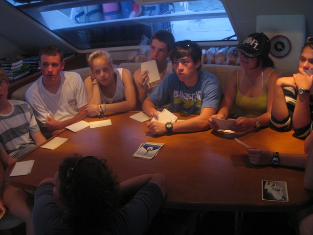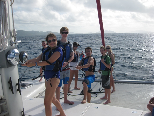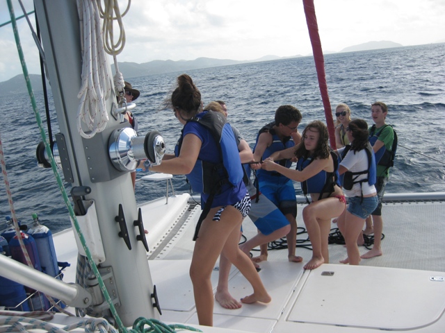 The first day that we have had a taste of the beautiful BVI sun rays! After a quick breakfast, we set sail and made for Blue Chromis Reef. It took a total team effort to raise the sails and to tack back and forth to make it to our dive spot. At the reef, we got to see the rarely spotted rum along with some rainbow parrot fish and a black moray eel. The water was crystal clear. After our dive, we chowed down on chicken salad sammies and once again set sail towards our next destination. Unlike the first day, we have learned the basics of sailing the Odyssea and were very successful in harnessing the wind (we reached 9 knots)! My favorite moment of today was watching Matt attempting a backflip off our boat, very unsuccessfully. After dinner and another “getting to know ya” game another day in the BVI came to an end.