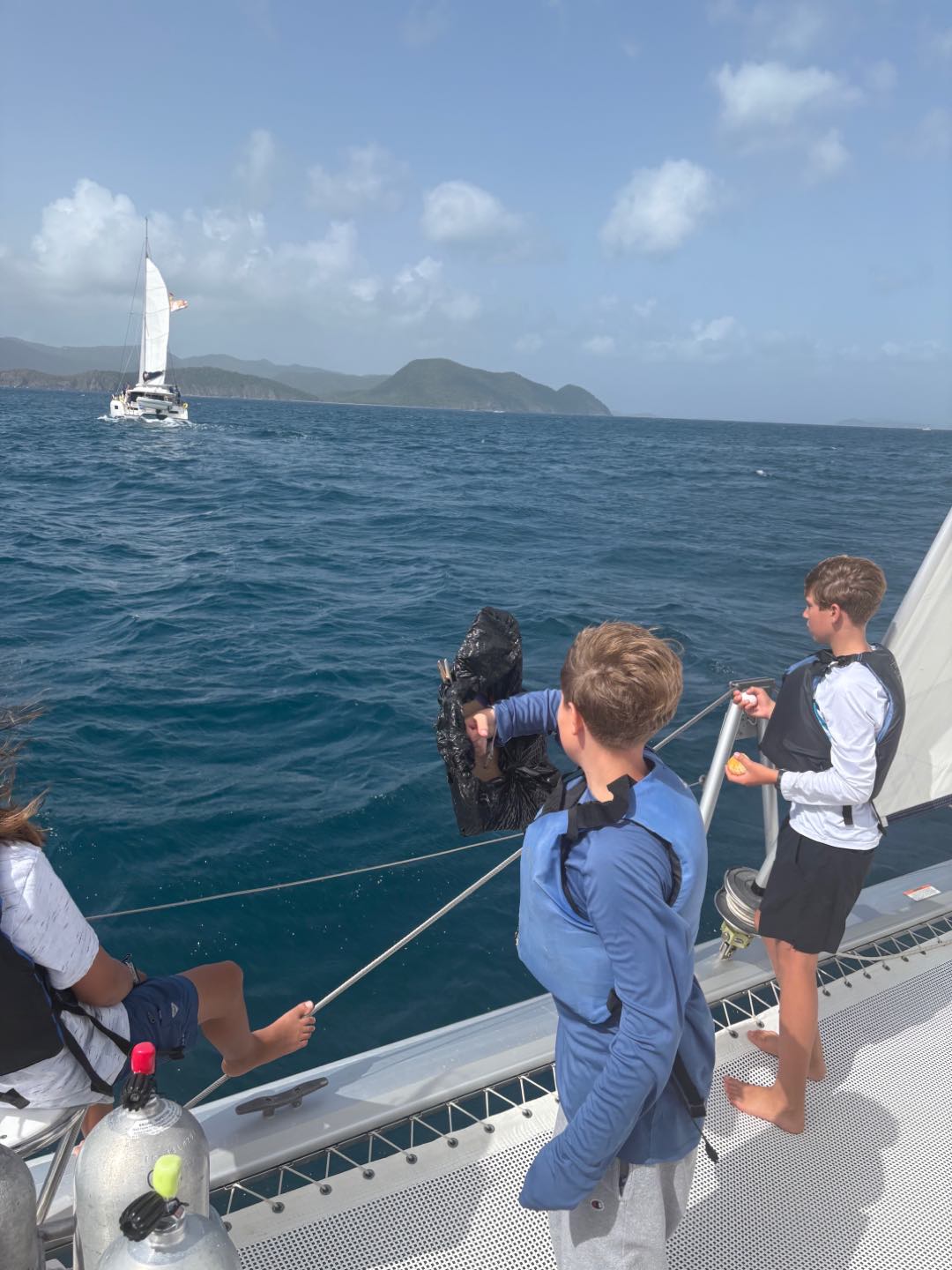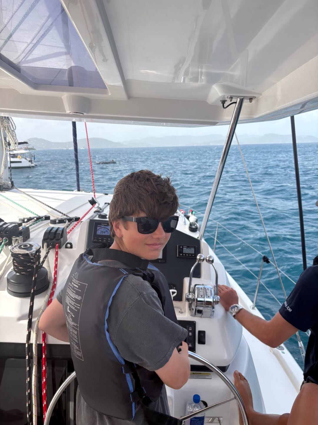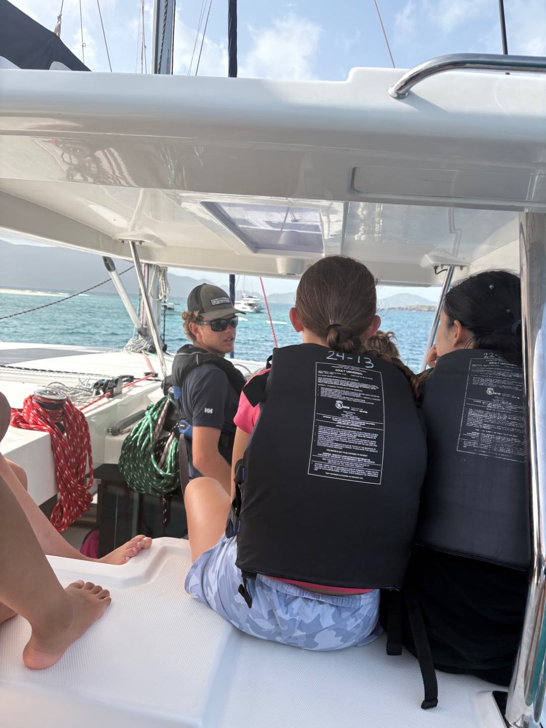Today we woke up at 7 o’clock to prepare for the big day. After a quick breakfast of oatmeal and cereal, Joey and I went over to a skipper meeting to discuss the upcoming sail race. We approached the starting line, and soon we were off. Izzy, Emme, and Sophia helped us become the first to get the sail up. For a good amount of time we were neck and neck with Nacho Dinghy, eventually they pulled ahead and we were faced with and egg and rotten food war with Pirate Song. Perice and Brian threw eggs and apples at them while Breccan used his shield to protect himself. We ended up failing miserably. After Sophie, Oon, and Mengmei helped deckie-ing, we got some shore time. After everyone’s amazing lunch, we set sail for the rough seas. Everyone had a fun time listening to music on the hard top and feeling the nice ocean spray on our feet. After we got on the mooring ball, we hopped down into the surprisingly chilly water. Everyone loved seeing the Willy T ship wreck, but was Eager to climb on board and get dry. Breccan and Pierce also found some old coins on the ocean floor. Once safely anchoring in Great Harbor Peter, the Minerva boats finally rejoined the fleet after a wonderful dinner of chili and rice, and we ended the night with a friendly game of poker.