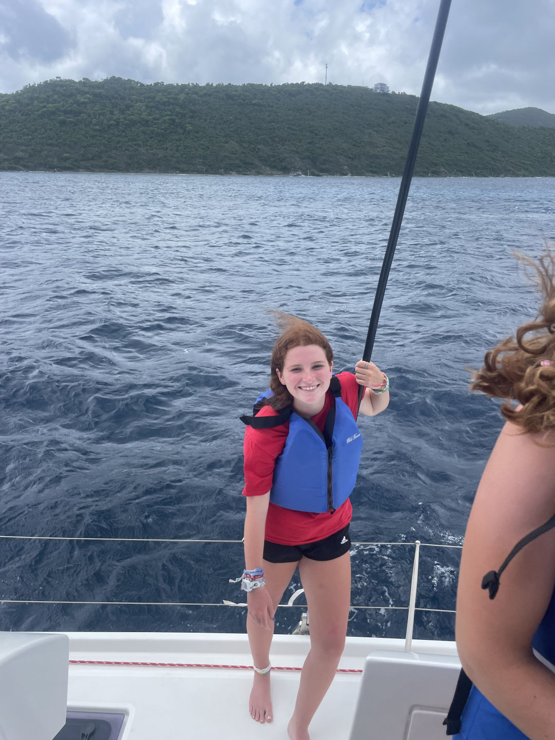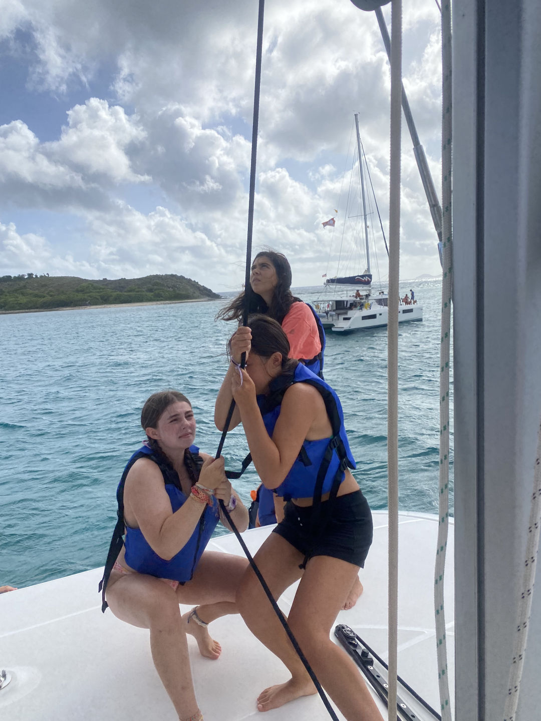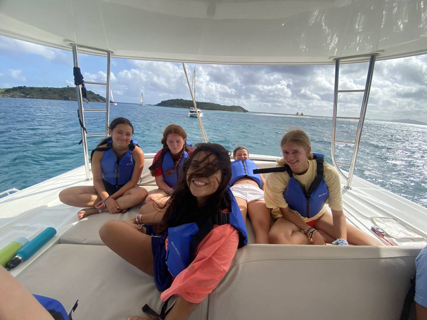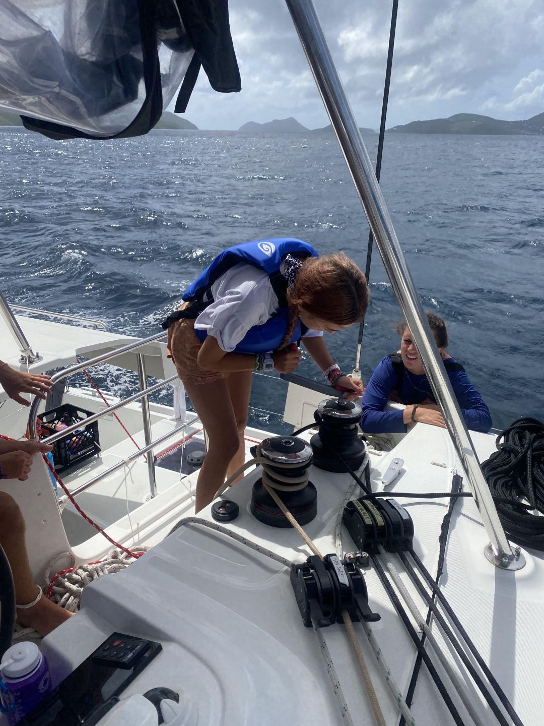 Hi, I’m Brie, and I am from Dallas, Texas. Today we woke up and ate cereal, and then I left with Tait to go to a skipper meeting. Our meeting was for a race we had today, from where we were anchored to where we got water. We got 3rd place in the first race, which was really impressive. Me, Avery, and Belle all got a chance to be on the helm today, and it was so fun. When we got done with the first race, we all got our phones and went to shore. We all walked around for a while to catch up with friends and family then we ate at Omar’s. The food was super good, and everyone loved eating off the boat for a day. While on shore, Tait and I went to another meeting for a different race. We all sat up in the cockpit, and all of us ended up falling asleep. Some of us woke up to help, but Hanna, Amelia, Jack, Aria, Yoni, and Rangeley stayed asleep. When we all woke up, we found that we had got first place for the second race thanks to Belle’s amazing helming! Taylor came back from a different boat because she was diving. Then we all ate dinner and ended the day with Amelia making brownies. Today was a great day. I love you and miss you, Mom, Dad, and Brooks!
