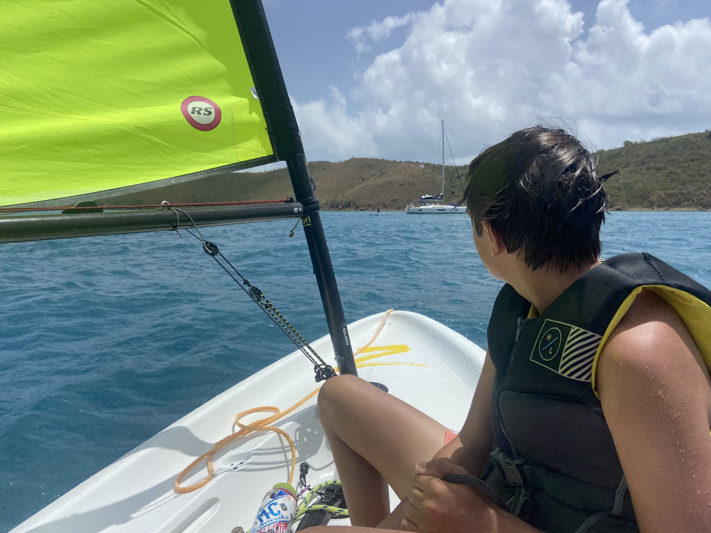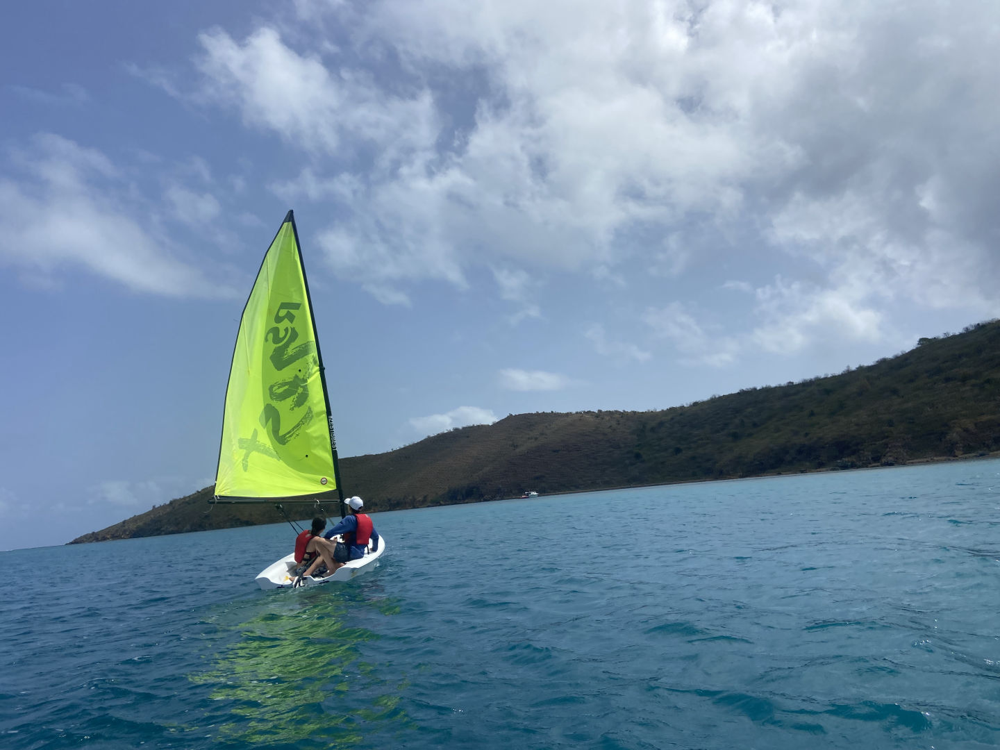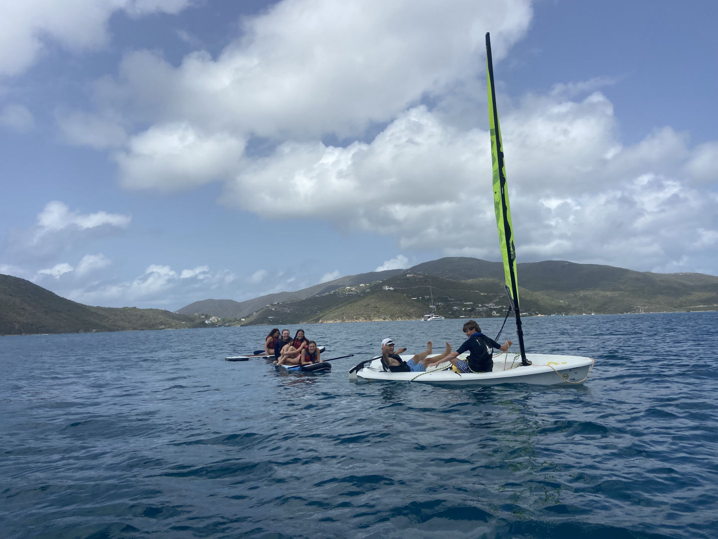 Hi, I’m Luke. I’m 15, and I’m from Cincinnati, Ohio. Today we had a later wake-up at 8, and after a bunch of cereal, we headed out to the shore. We spent a couple of hours sailing zest, paddle boarding, and playing football. Zests are small, compact versions of sailboats that can fit one to four people. Constantin, Oscar, and I took some time paddling around while Peyton, Sam, Hayley, and Sloane sailed the zests around other ActionQuest boats that had been anchored near our boat. Even though all of us turtled and got a little sunburned, we all had an amazing time on the beach and sailing. We also learned a lot about how the wind affects bigger boats from the zest. I got some steering tips from Grayson while we sailed the Zest with Sam. We ended our beach time with football with Mina and one of our counselors Riley. When we got back, we spent some time on the bow playing games like mafia and listening to a wide variety of music. We had to stay out of the salon (the inner part) for a while today since our counselors Riley and Amelia were hard at work fixing all our heads (restrooms) since the head that all five of us boys share breaks nearly every day. Since we all appreciate the work that our counselors do (especially with cleaning the heads), we plan on buying them all energy drinks and coffee tomorrow when we go to shore at Spanish Town. We ended the day with a Mexican night cooked by Hayley and Oscar. Today was a lot of fun, and we were all really glad it was a nice, relaxing day after the busy couple of days we’ve had lately.