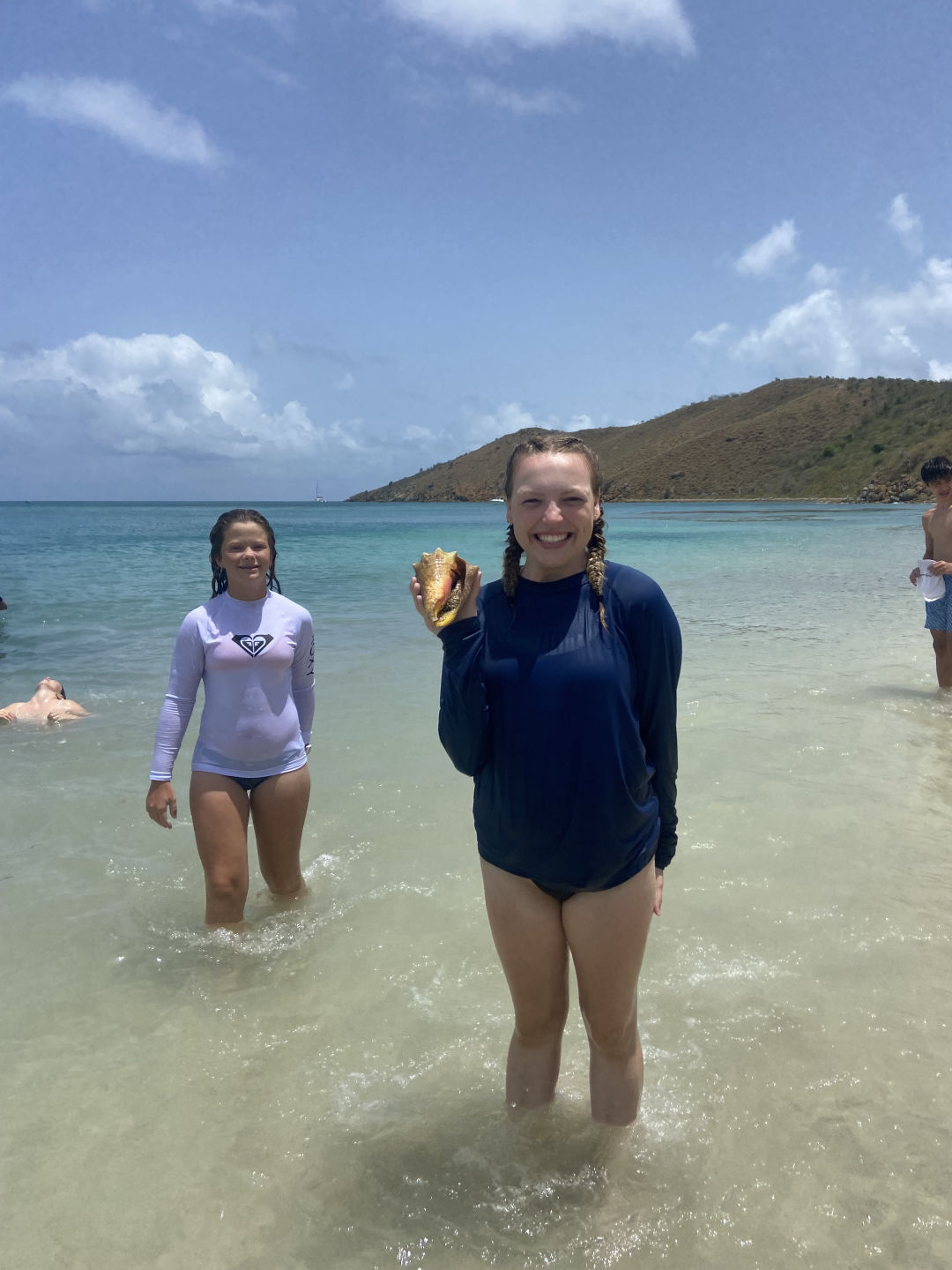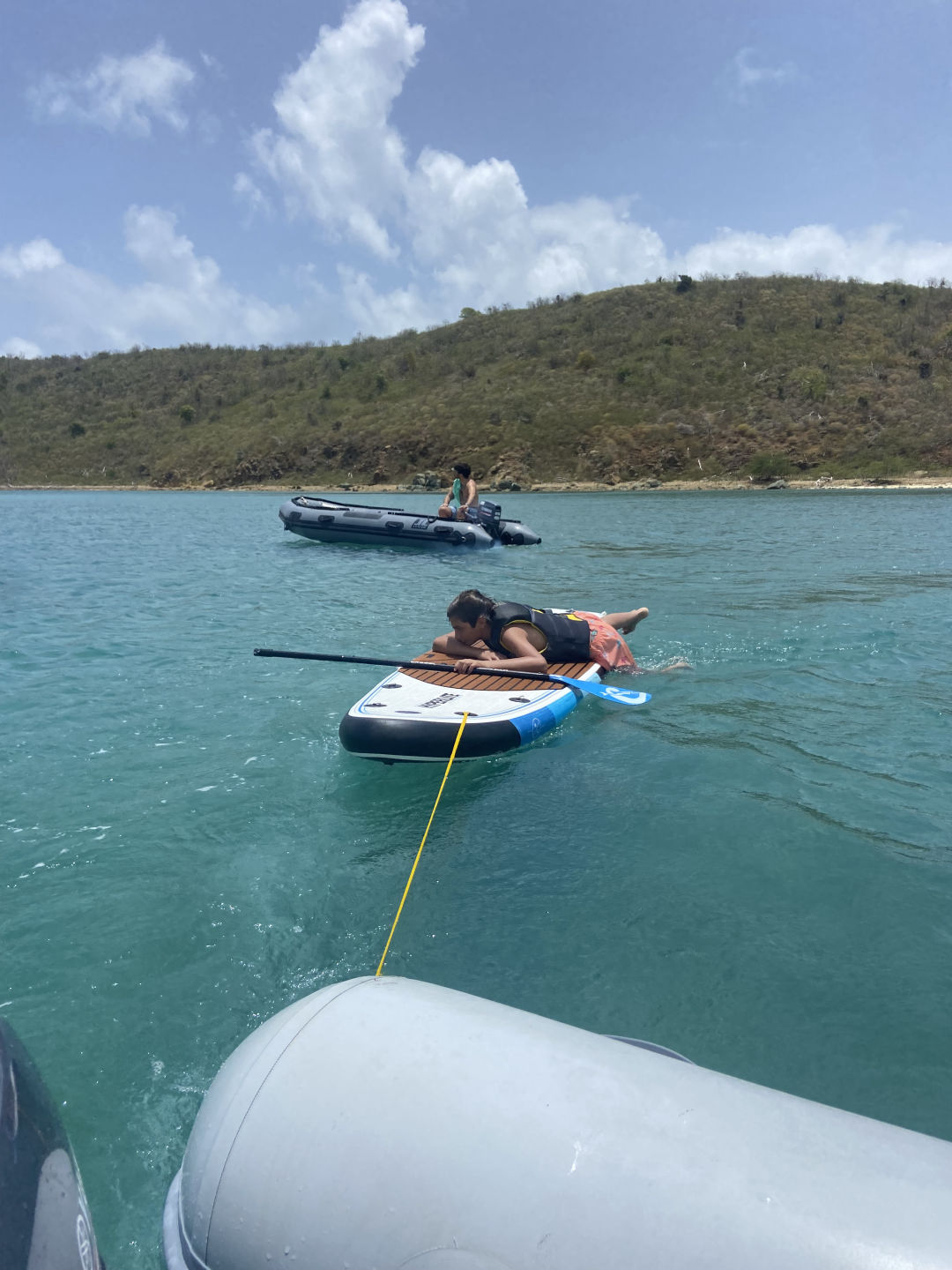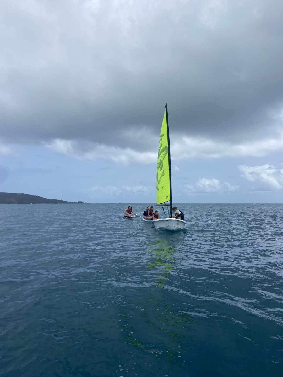 Hi, I’m Luke. I’m 15, and I’m from Cincinnati, Ohio. Today we had a later wake-up at 8, and after a bunch of cereal, we headed out to the shore. We spent a couple of hours sailing zest, paddle boarding, and playing football. Zests are small, compact versions of sailboats that can fit one to four people. Constantin, Oscar, and I took some time paddling around while Peyton, Sam, Hayley, and Sloane sailed the zests around other ActionQuest boats that had been anchored near our boat. Even though all of us turtled and got a little sunburned, we all had an amazing time on the beach and sailing. We also learned a lot about how the wind affects bigger boats from the zest. I got some steering tips from Grayson while we sailed the Zest with Sam. We ended our beach time with football with Mina and one of our counselors Riley. When we got back, we spent some time on the bow playing games like mafia and listening to a wide variety of music. We had to stay out of the salon (the inner part) for a while today since our counselors Riley and Amelia were hard at work fixing all our heads (restrooms) since the head that all five of us boys share breaks nearly every day. Since we all appreciate the work that our counselors do (especially with cleaning the heads), we plan on buying them all energy drinks and coffee tomorrow when we go to shore at Spanish Town. We ended the day with a Mexican night cooked by Hayley and Oscar. Today was a lot of fun, and we were all really glad it was a nice, relaxing day after the busy couple of days we’ve had lately.