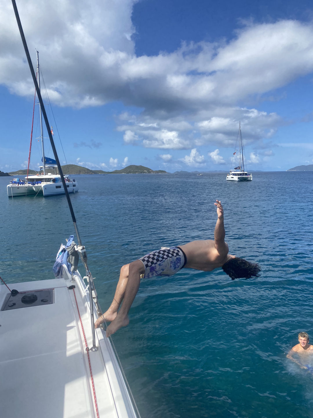 We had our second day of confined water diving lessons and finished all of our confined water skills. I was super scared, but I have the best dive group, Aria, Beth, and Amelia, and we worked through it together. We even got to get inches away from a baby stingray who loved us and stuck around throughout our whole lesson. After diving, we took out the miniature sailboats called Zests, which we had a lesson on operating today. Hanna Aria, Amelia, and I drove it around in circles around the other boats and impressed the other councilors with our skills! We then traded our sailboat with Belle, Taylor, Avery, and Dylan for the paddle boards, where Amelia and I tried to tan while we waited to go back to the Odyssey. When we got home, we put our life jackets on and set sail. My favorite thing to do is sit up in the cockpit and watch our Captain Tait sail. When we anchored, we tied our boat to another that my best friend was on, so I got to take a tour of her boat and meet her new friends too. Then we showered while the chefs made us broccoli Mac n cheese, which unexpectedly impressed us all. Now we’re heading up to the cockpit to do our nightly tradition called squeeze, and then I’ll head over to my friend’s boat and chill out with her until bedtime. That’s all for today. See you in 11 days, Dad!